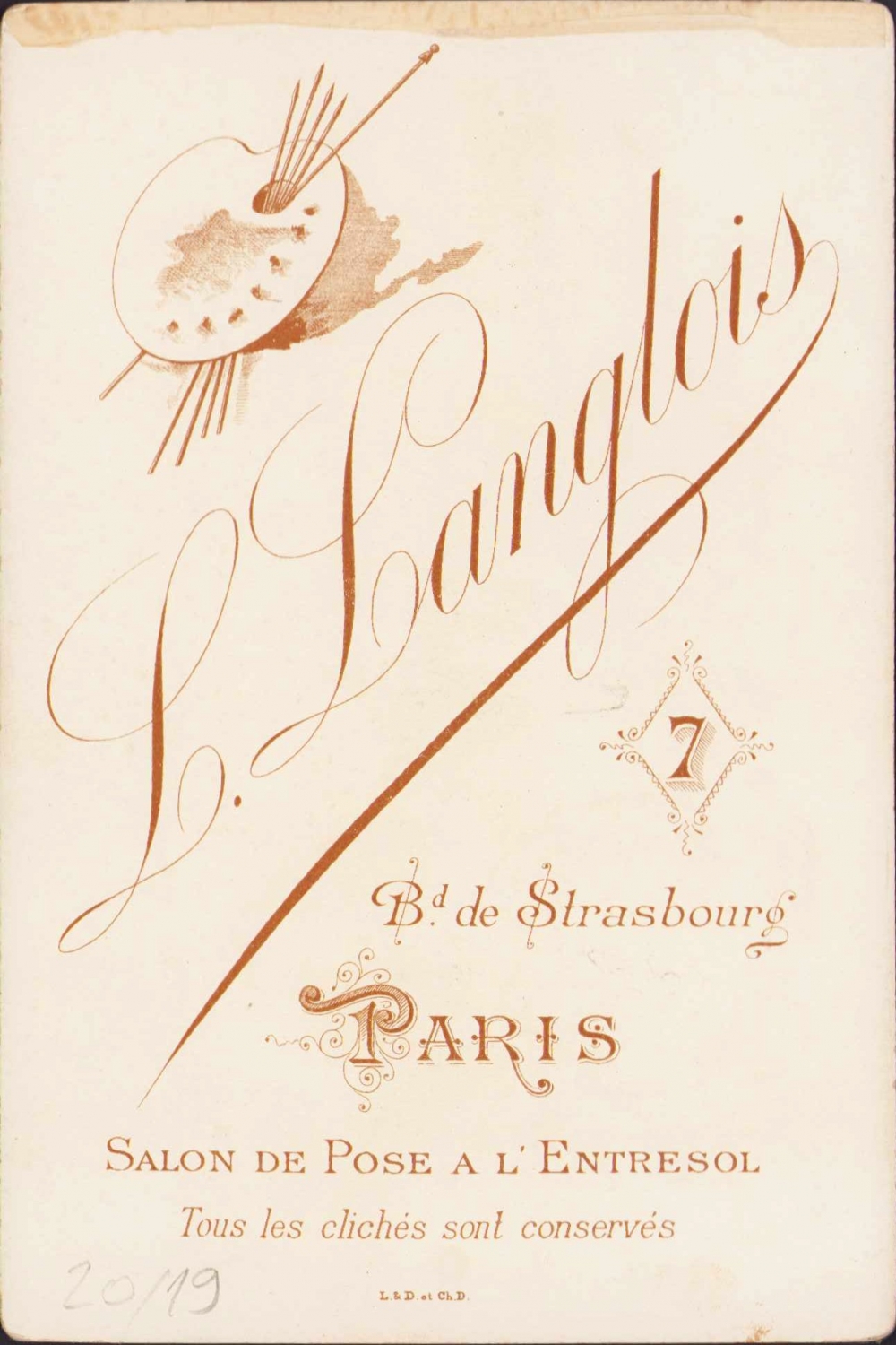 Güzel kadın portresi, Foto L. Langlois, Paris adresli, kabin fotoğrafı, 11x16,5cm
