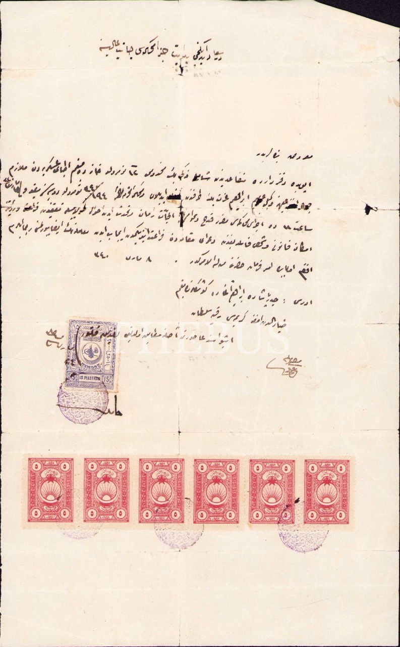 Hanedan: Haydarpaşa İbrahim Efendi Köşkü'nde Şehzade Ziyaeddin Efendi'nin Kerimesi Rukiye Sultan'dan İstanbul İkinci Bidayet Ceza Mahkemesi'ne yazılmış Osmanlıca dilekçe, 1340 tarihli, 21x33 cm, epey yıpranmış ve delikler mevcut haliyle