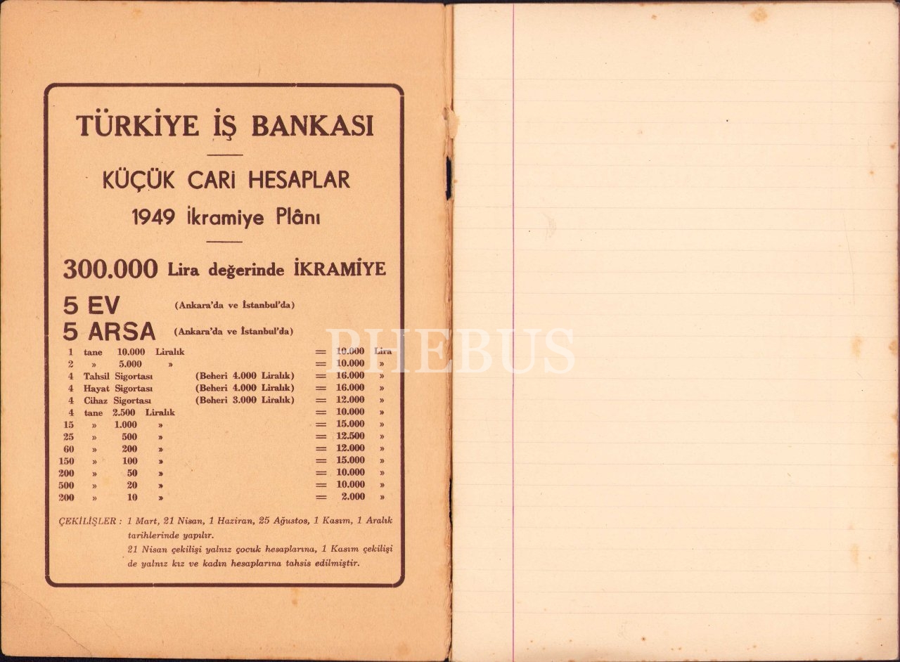Türkiye İş Bankası Kumbara dergisinin eki olarak boş öğrenci defteri, 1949 yılına ait, 17x24 cm, kapağı ayrık haliyle