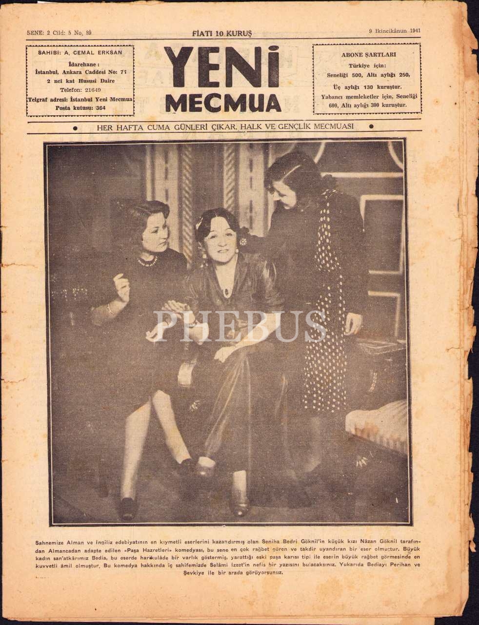 Yeni Mecmua 89. sayı, 9 İkincikânun 1941, 23x31 cm, epey yıpranmış haliyle