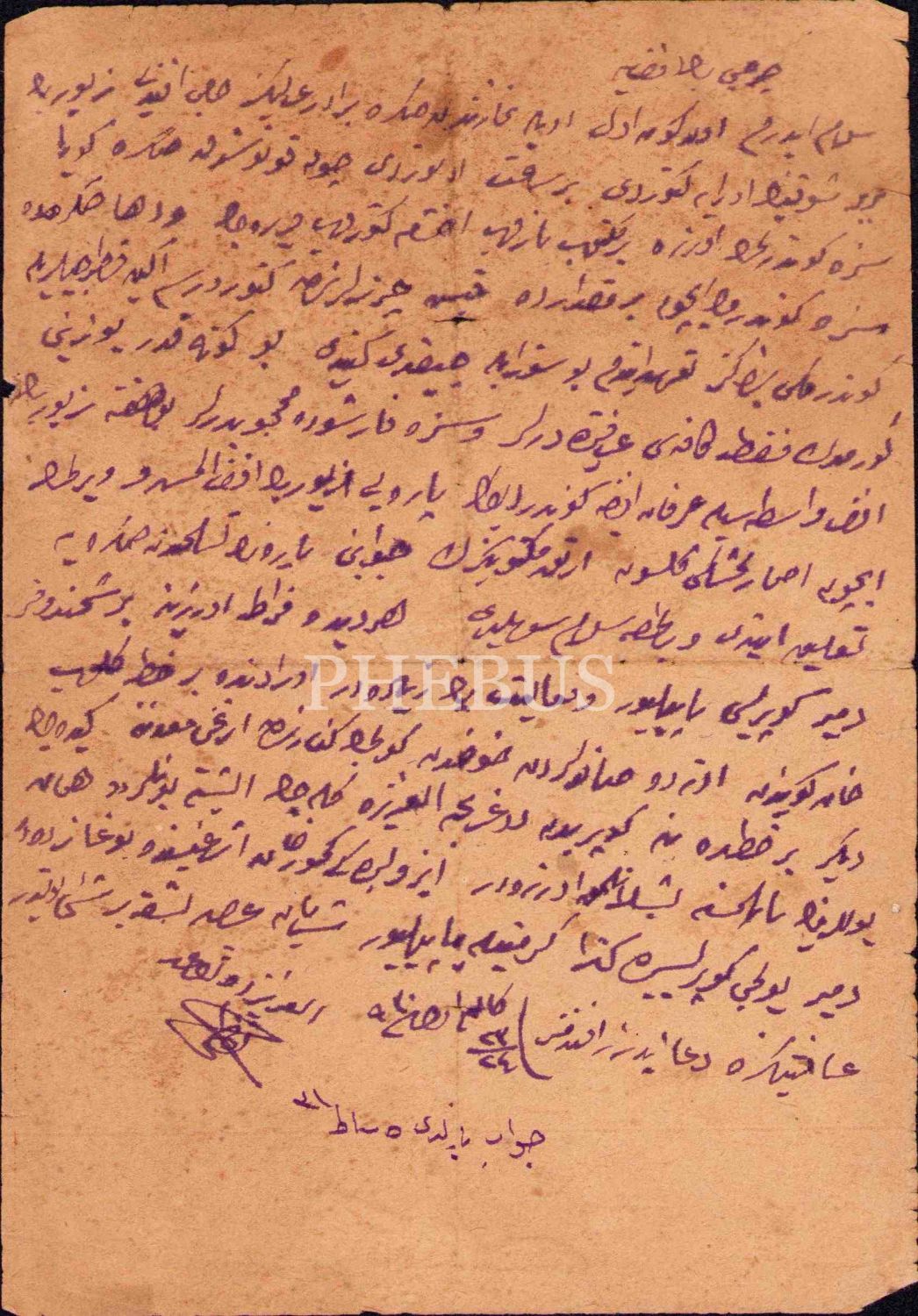 Müjde ve tebrik telgrafı arkasında Osmanlıca mektup, 1930 tarihli, 14x20 cm, yorgun ve kenarlardan yırtık haliyle