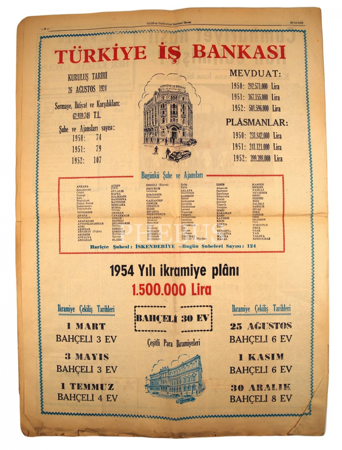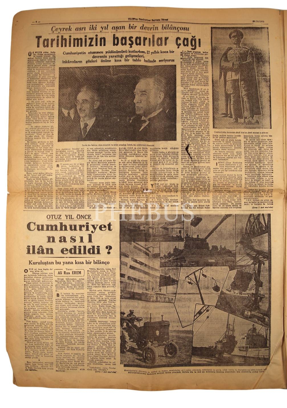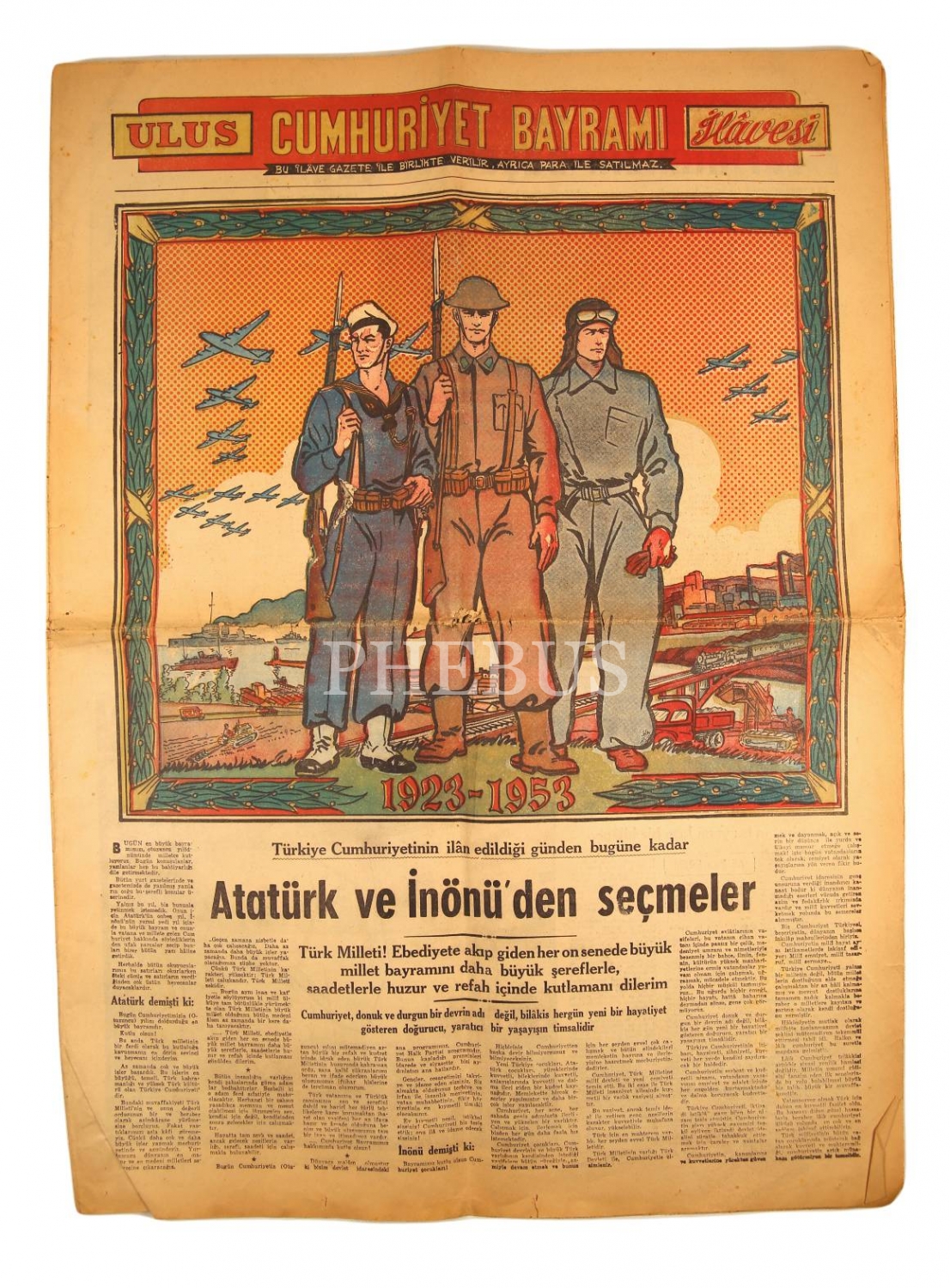 Ulus gazetesi Cumhuriyet Bayramı eki, 29.10.1953 tarihli, 7 sayfa, 43x59 cm, yıpranmış haliyle