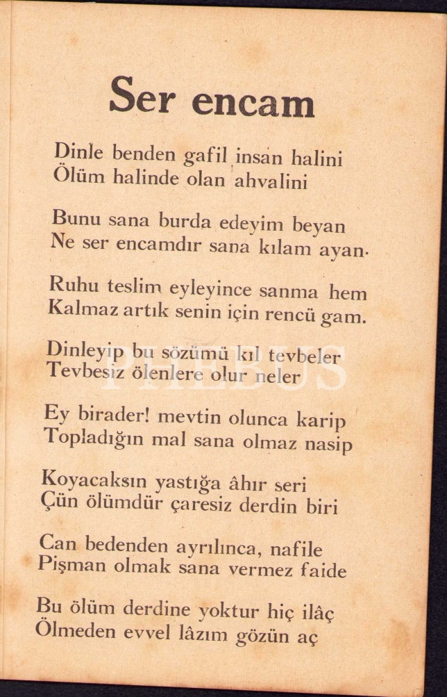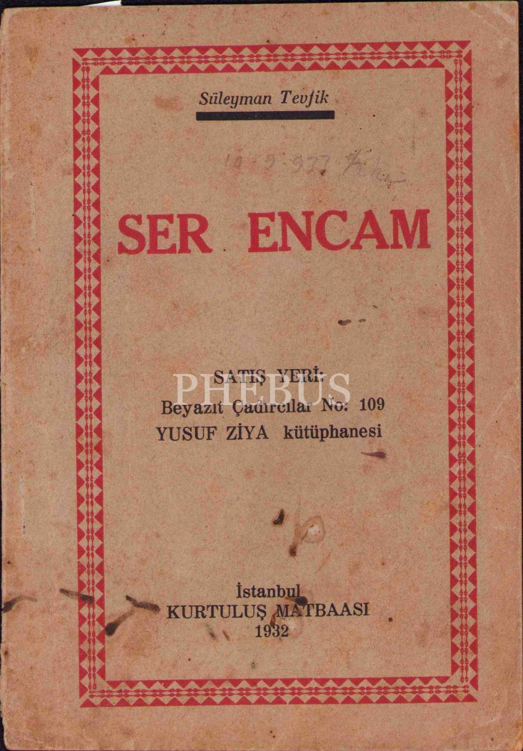 Ser Encam, Süleyman Tevfik, Kurtuluş Matbaası, İstanbul 1932, 31 s., 13x19 cm, kapağı yorgun haliyle