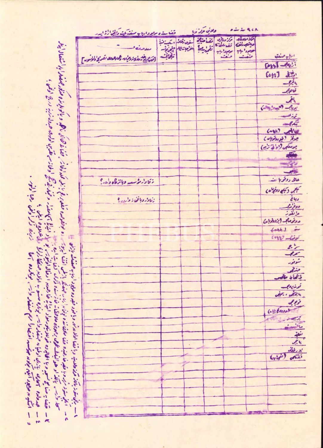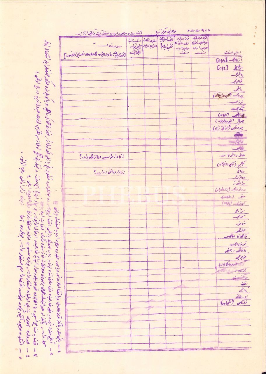 Vilayet ve kazalardaki zanaatkârların 1928 senesindeki sayı ve durum tablosu, 3 adet Osmanlıca boş tablo, 32x42 cm