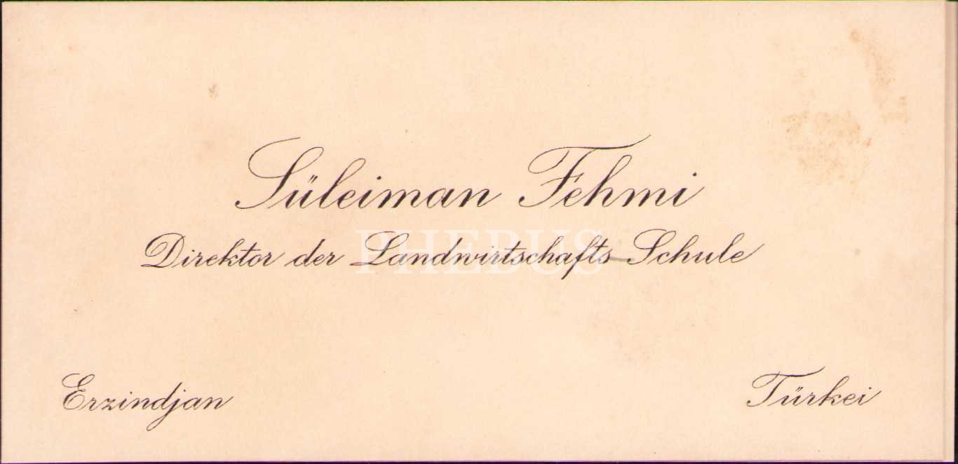 Erzincan Tarım Okulu Direktörü, Süleyman Fehmi kartviziti, 5x11 cm