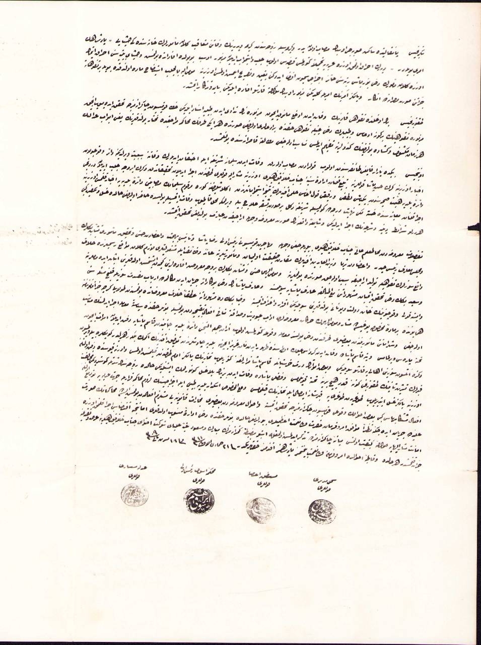 Maarif Nazırı Haşim Paşa terekesinden 1309 tarihli Osmanlıca rapor, rapor altında Adliye Müsteşarı Mustafa Haşim mührü mevcut, 3 sayfa, 21x32 cm