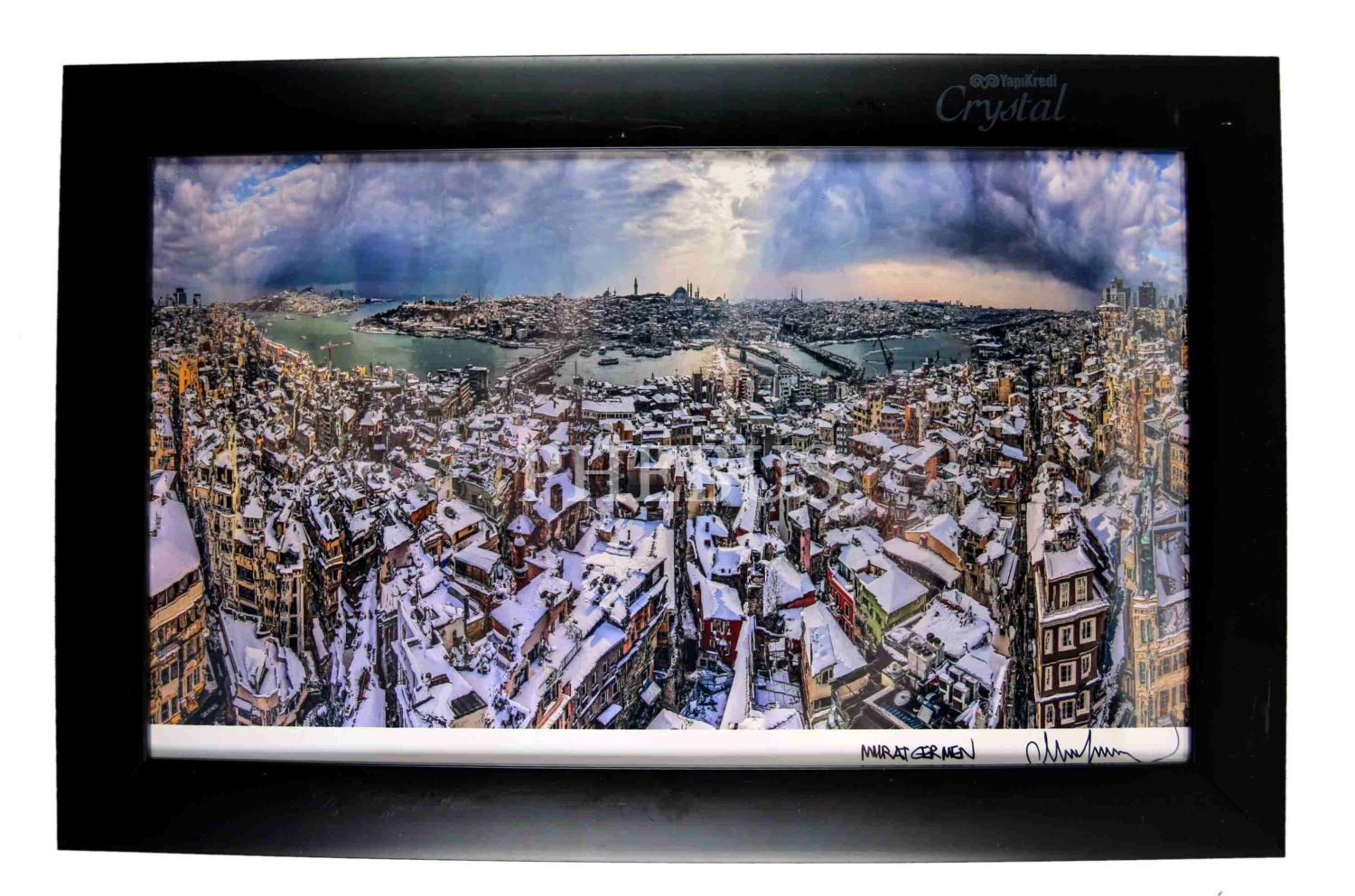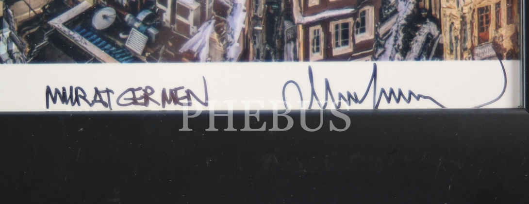 Murat Germen imzalı panoramik istanbul Haliç manzarası, çerçeveli, fotoğraf: 18x31 cm