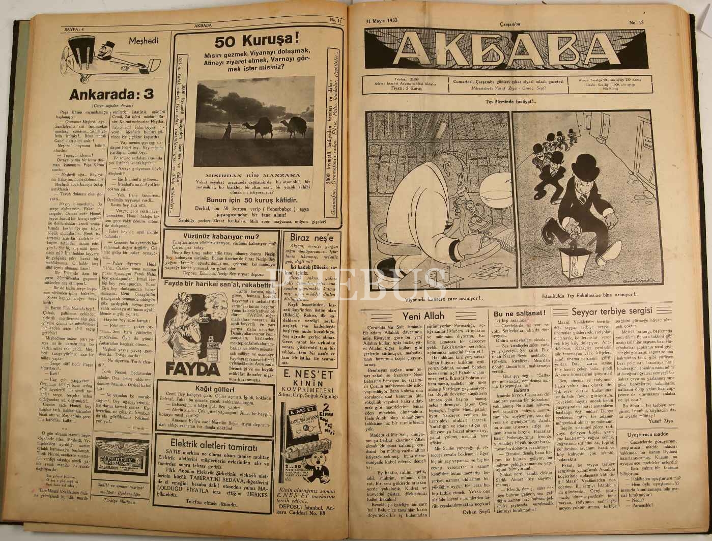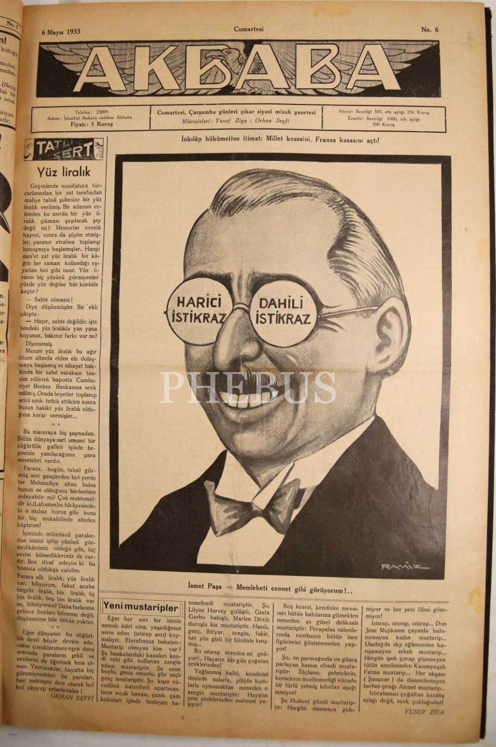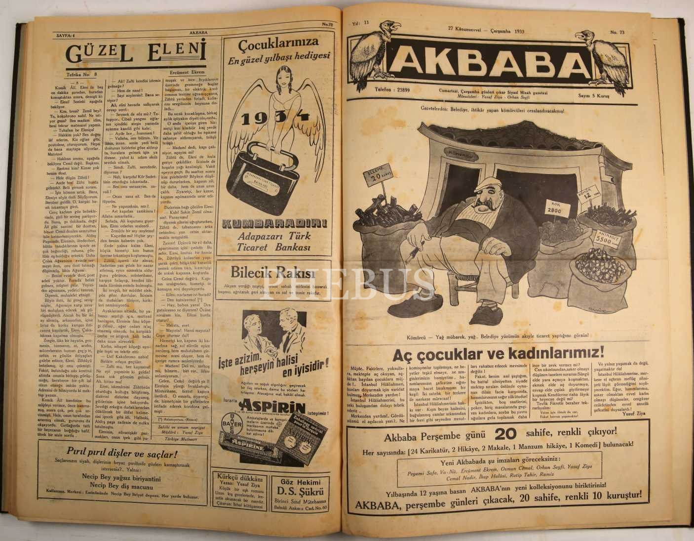 Akbaba gazetesi 1-73 arası sayılar tek ciltte, 32x47 cm, sırtı ortadan ayrık haliyle