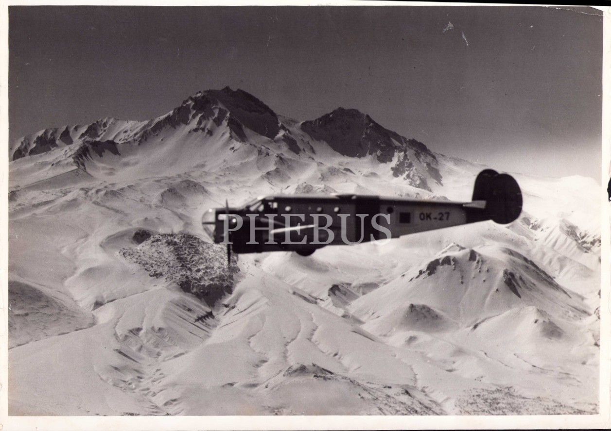 Uludağ önünde uçak fotoğrafı, 30x40 cm, rulo ve kenarları yıpranmış haliyle
