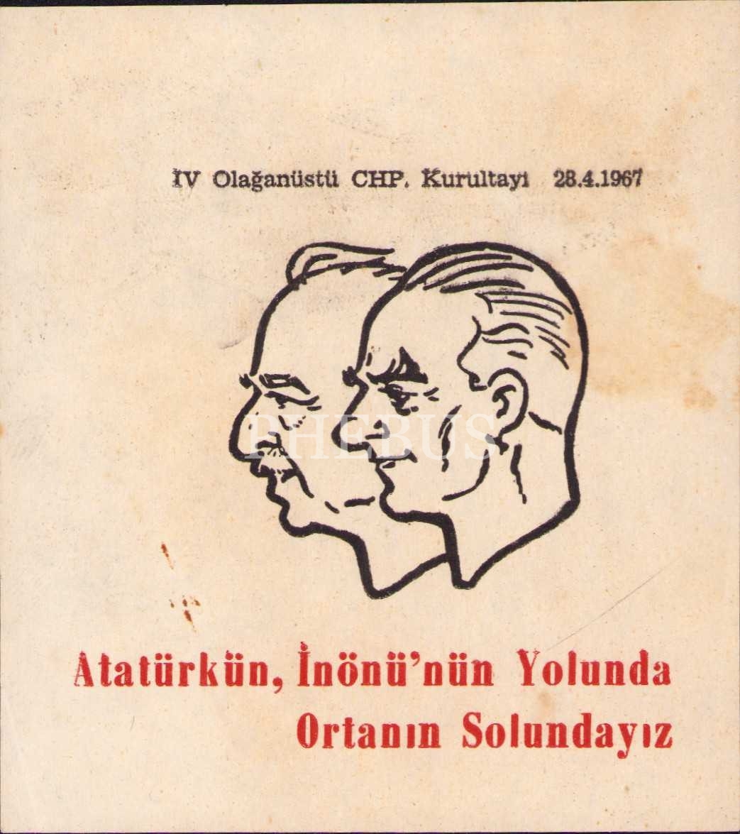 1967 tarihli CHP kurultayına ait yaka kartı, 9x10 cm