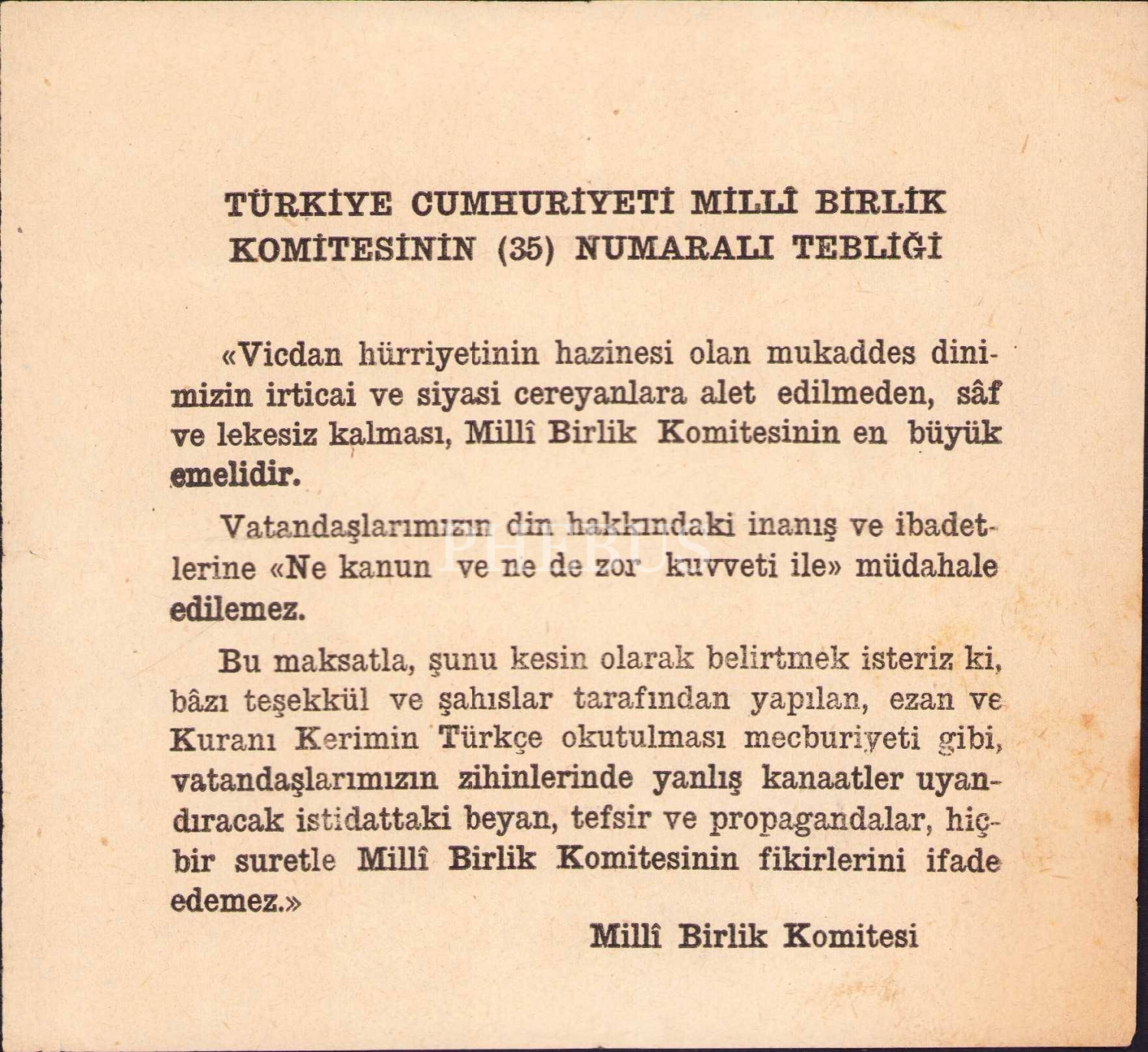 Millî Birlik Komitesi tebliği, 14x15 cm