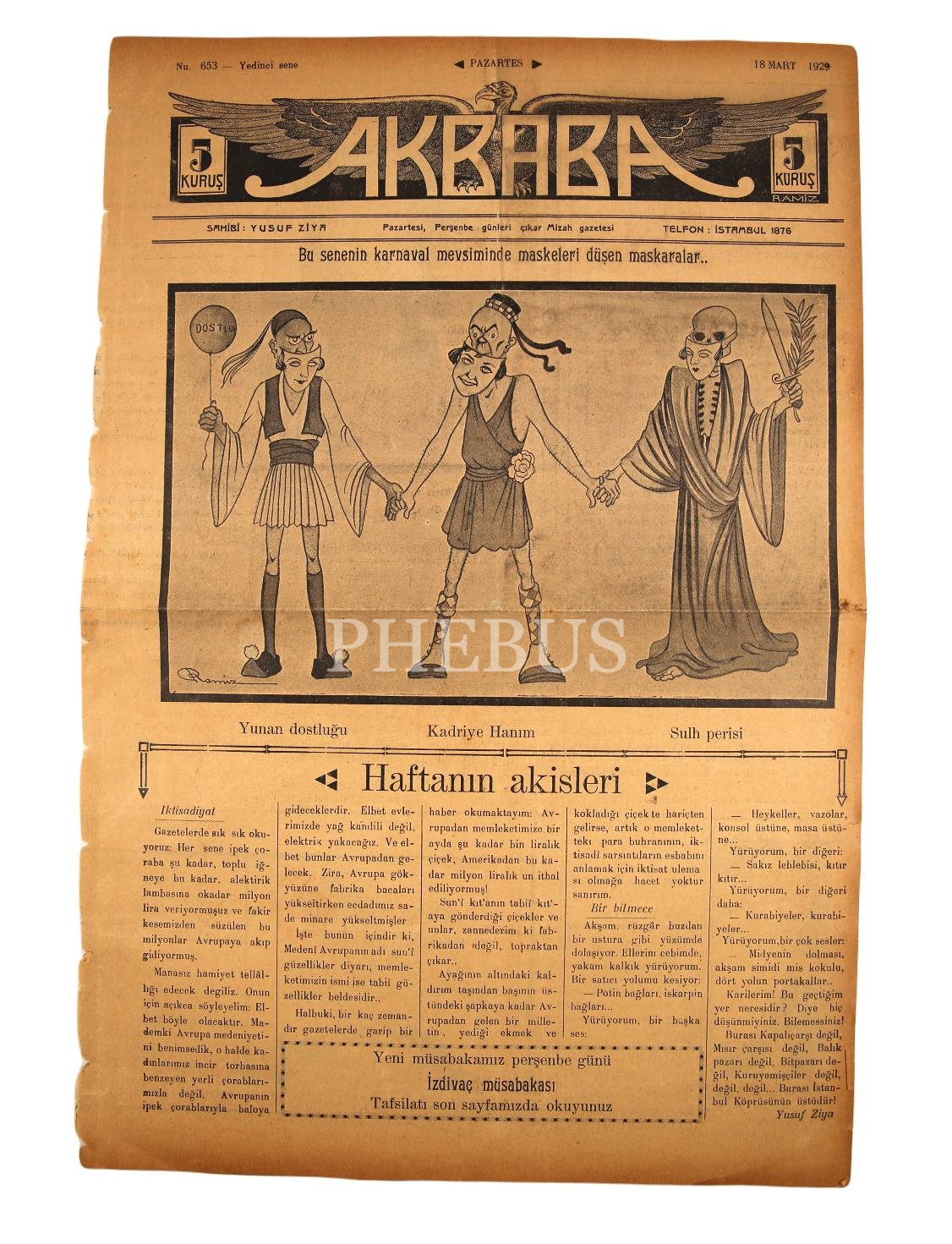 Akbaba gazetesi, 18 Mart 1929, 4 sayfa, 30x45 cm, yıpranmış ve yırtık haliyle
