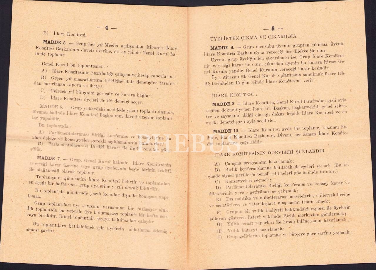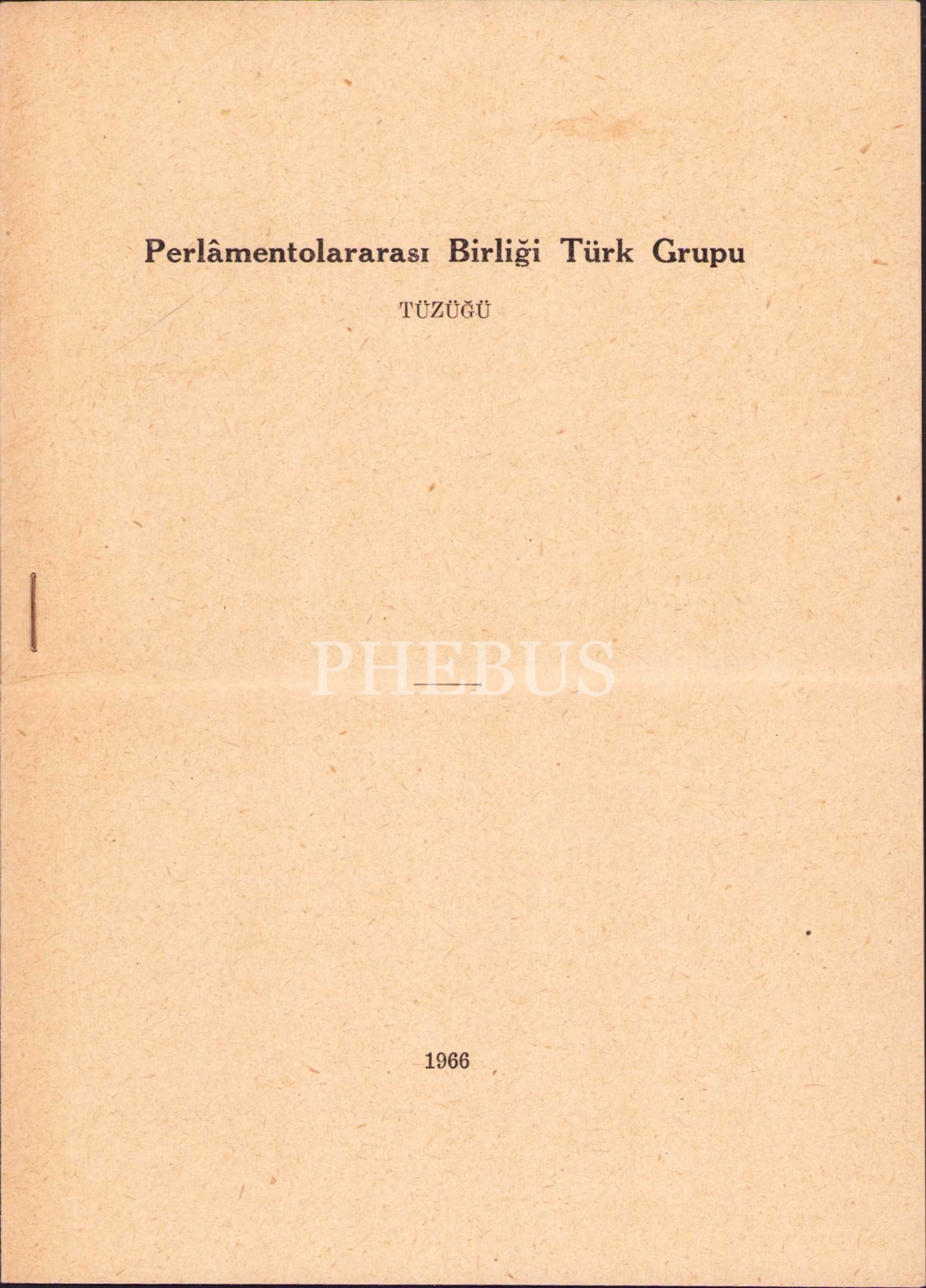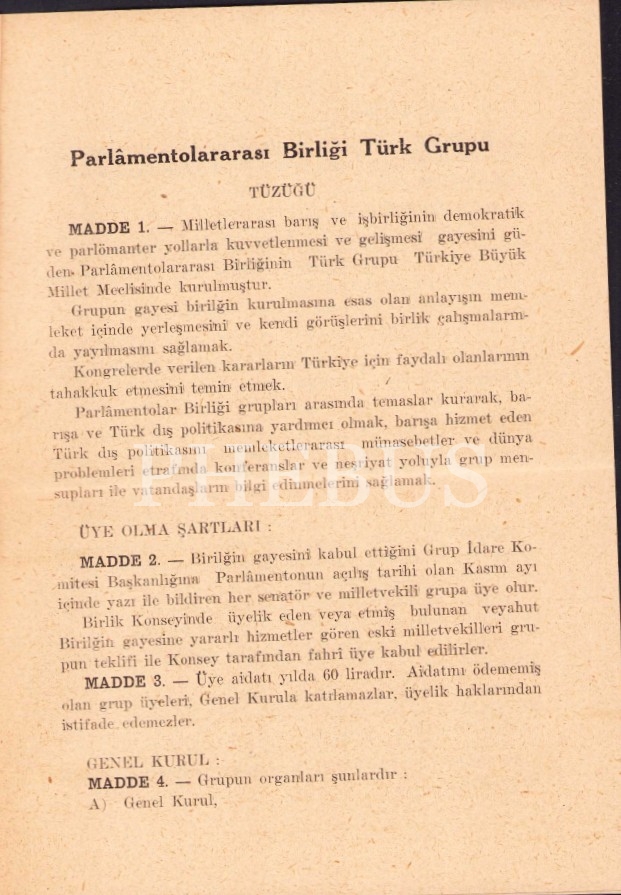 Perlâmentolararası Birliği Türk Grupu tüzüğü, 1966, 7 sayfa, 14x20 cm