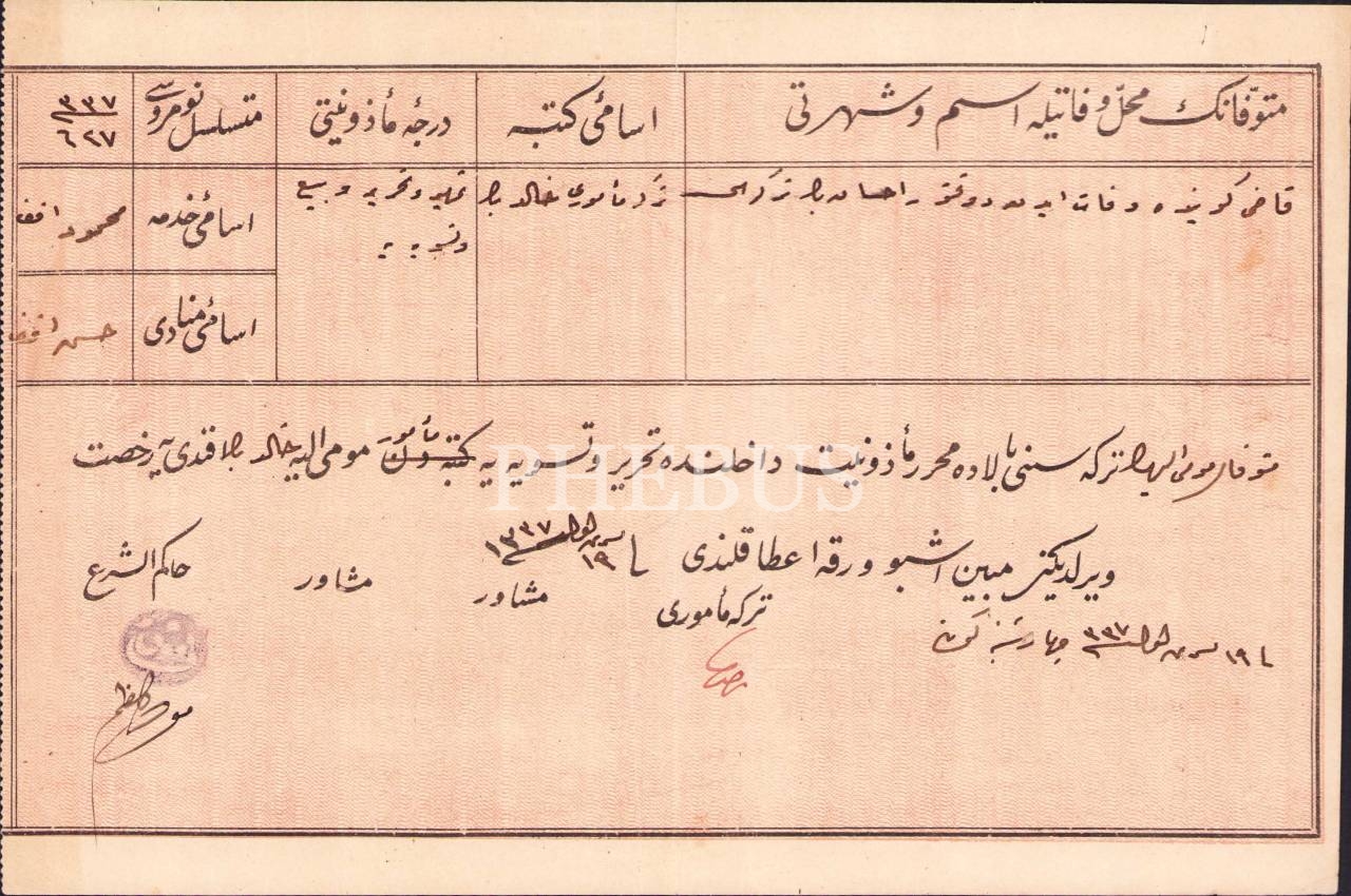 Kadıköy'de vefat eden Dr. İhsan Bey'in terekesine dair Osmanlıca yetki belgesi, 1337 tarihli, 16x25 cm