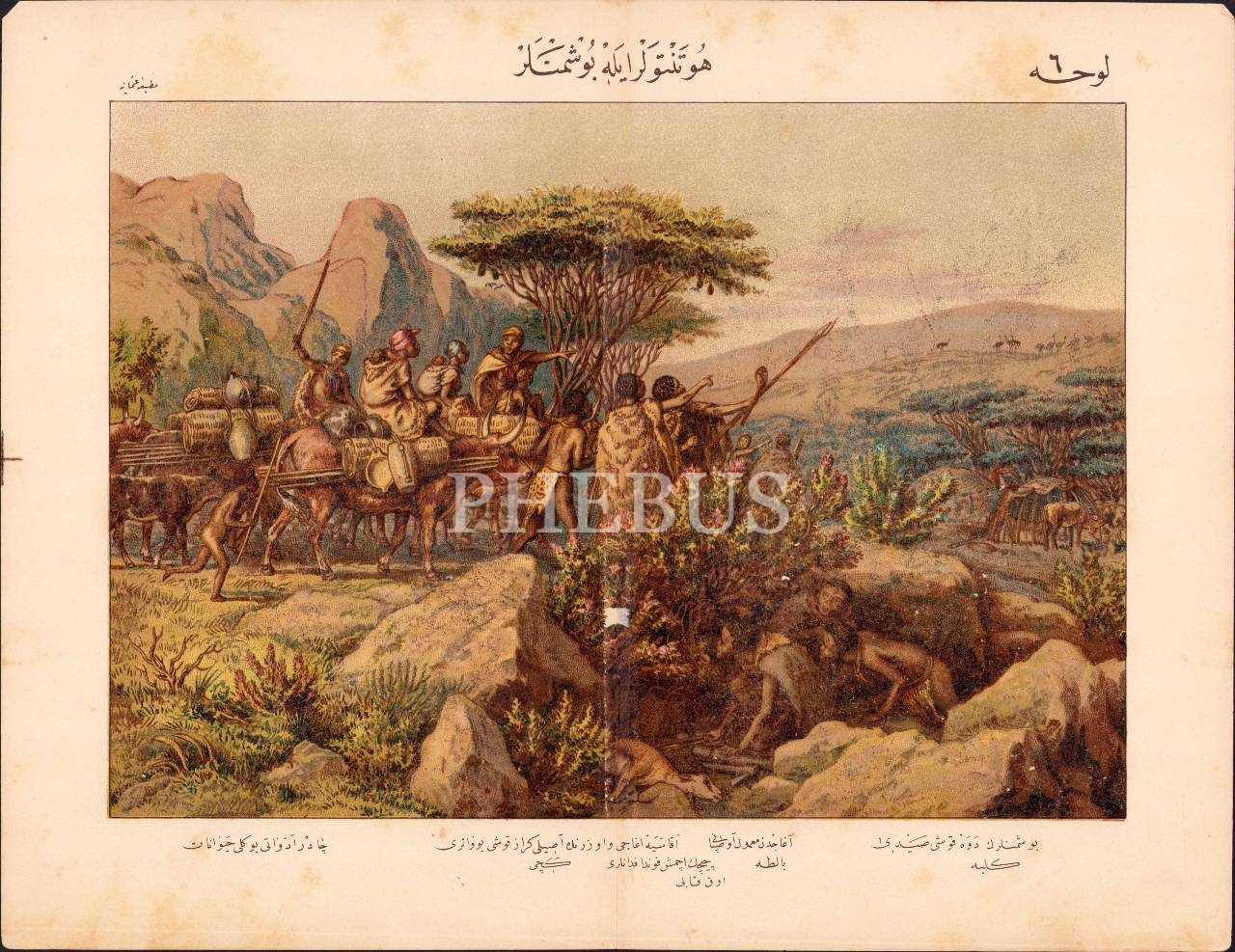 Osmanlıca "Hotantolar ve Boşimanlar" taş baskı levha, 29x37 cm, tamirli haliyle