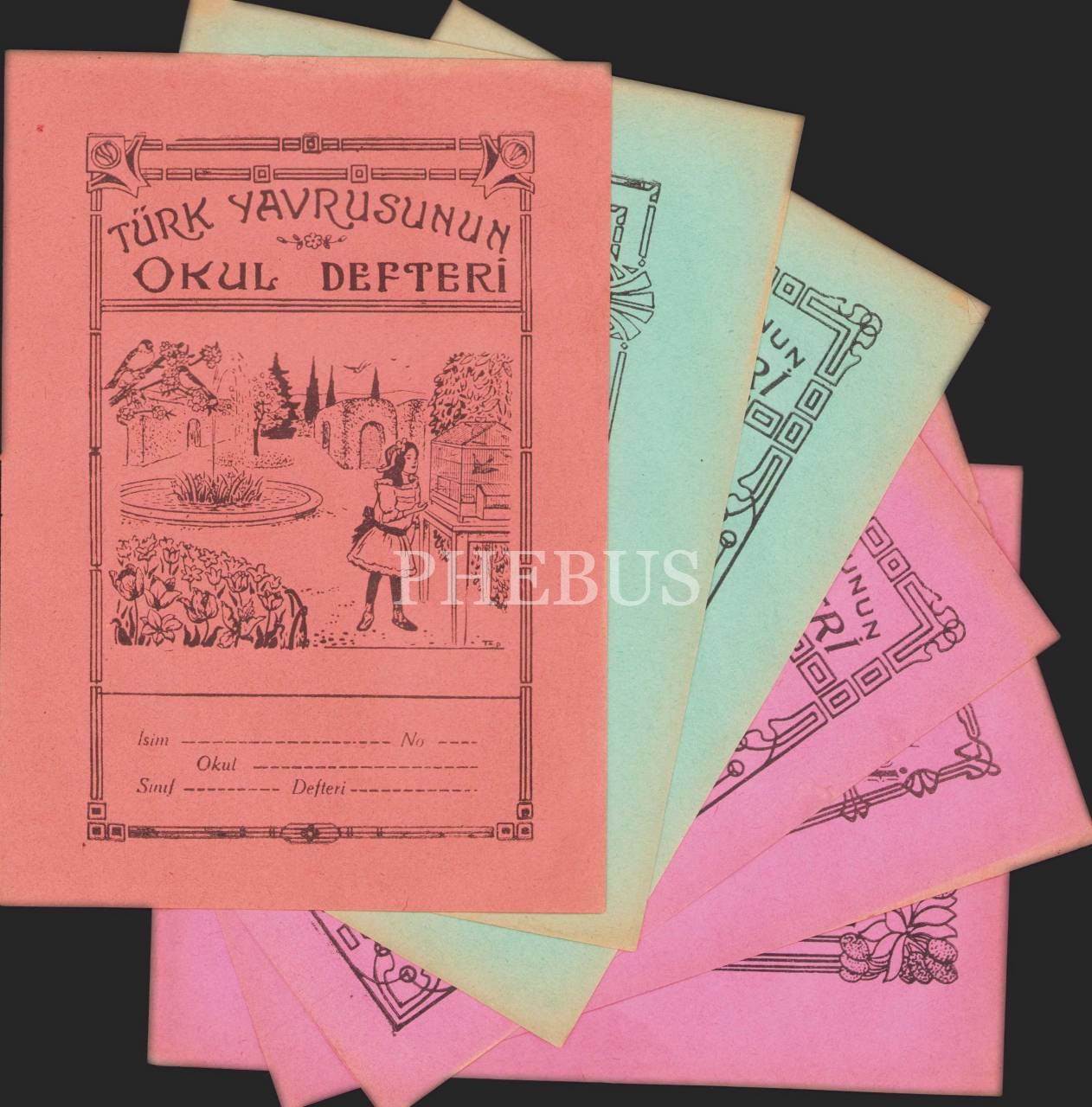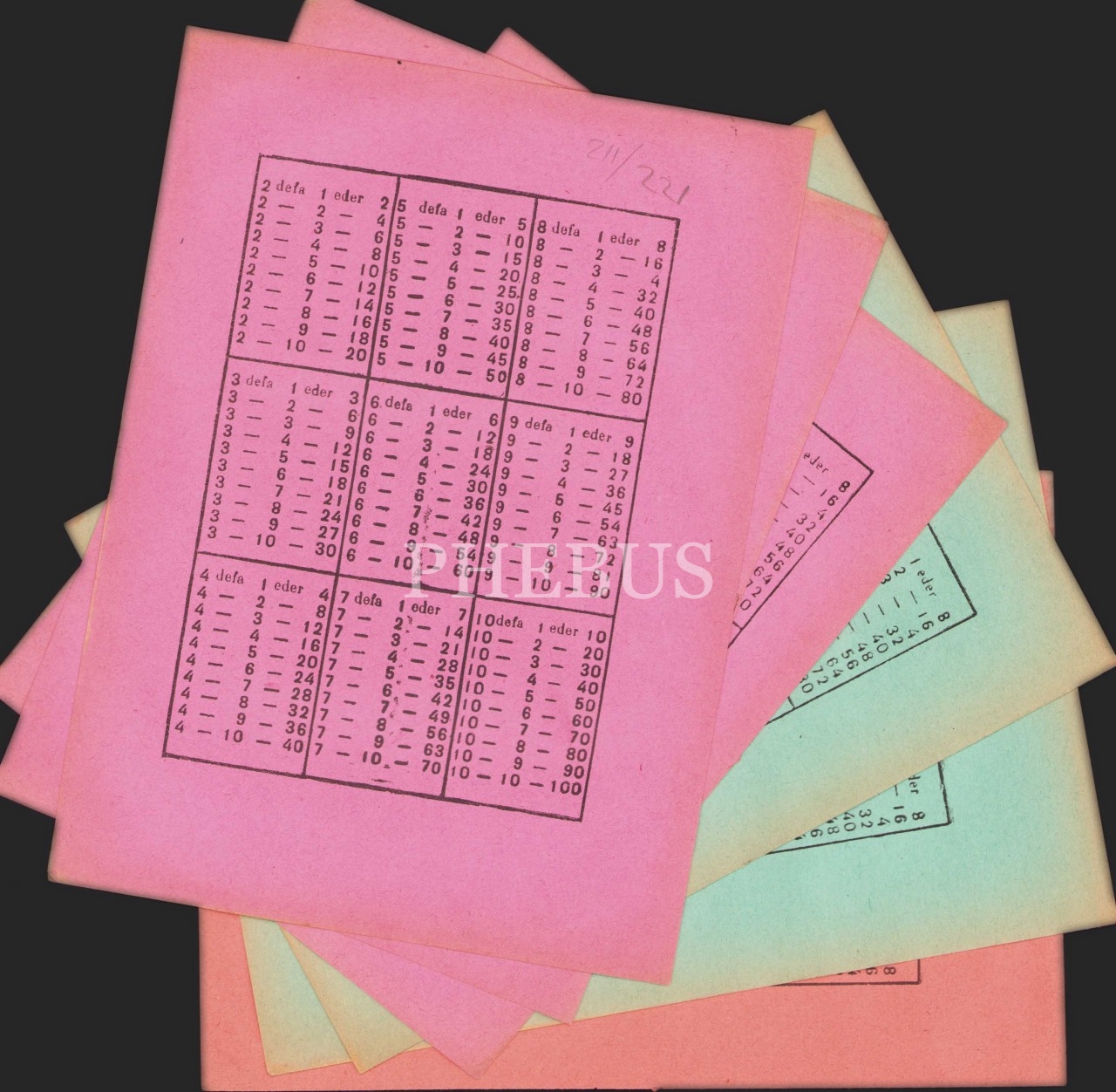 6 adet kâğıt defter kabı, arka yüzlerinde çarpım tablosu mevcut, 13x19 cm