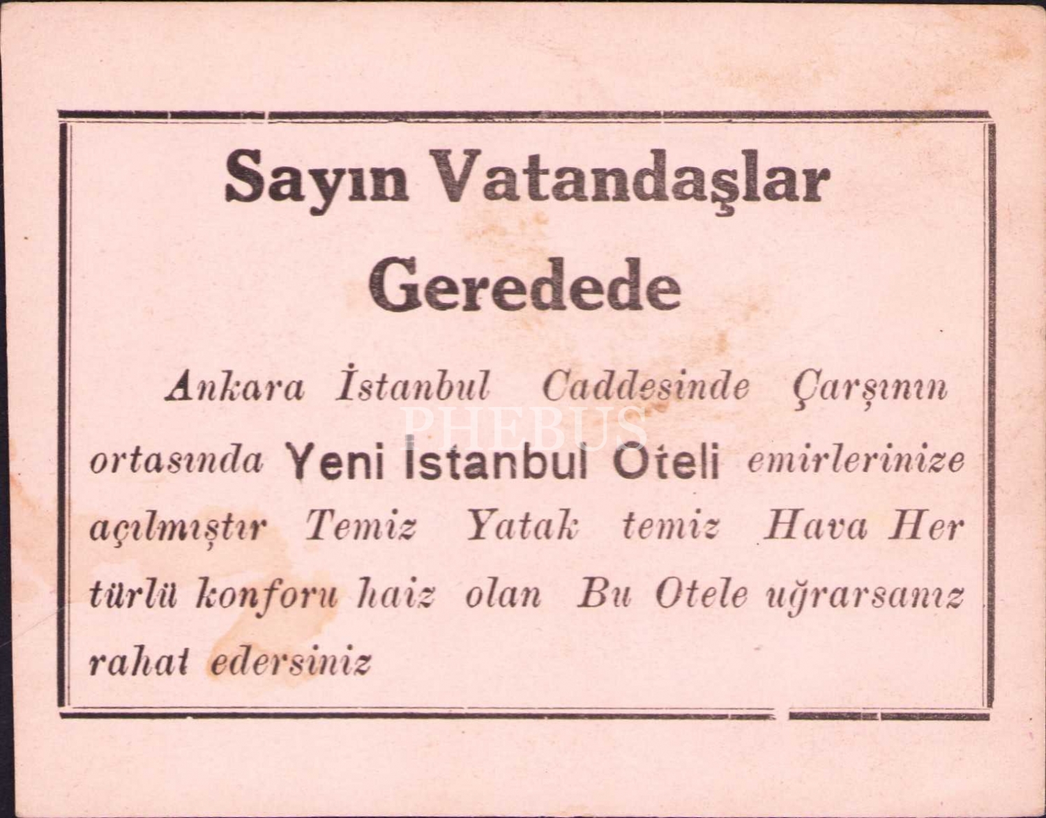 Yeni İstanbul Oteli reklam kartı, Gerede/Bolu, 10x13 cm