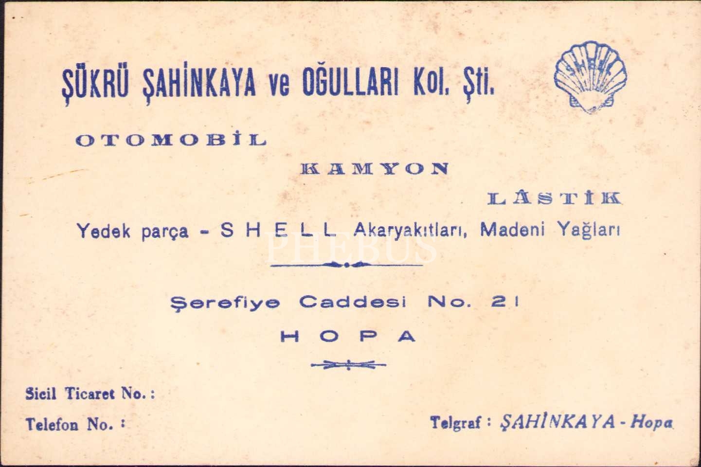 Şükrü Şahinkaya ve Oğulları Kol. Şti.Hopa [Artvin], Shell detaylı reklam kartı, 8x12 cm