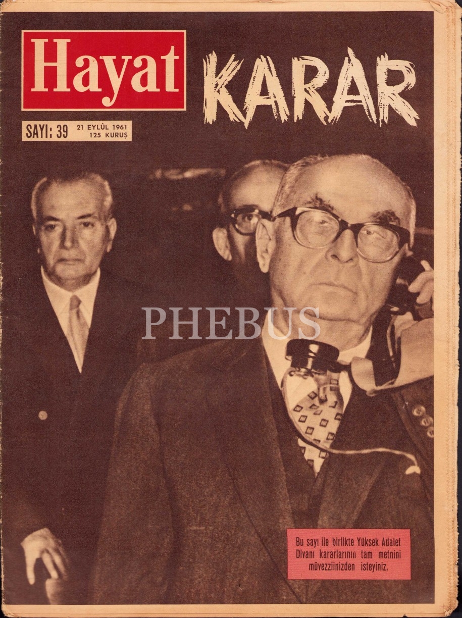 Arka yüzünde, "Birinci demokrasi devri kapandı. Açılan ikinci demokrasi devri memlekete hayırlı ve başarılı olsun" yazısı eşliğinde Yassıada resmi verilmiştir. *Şevket Rado tarafından 1956 yılında yayın hayatı başlatılan Hayat dergisi, içerik açısından getirdiği yeniliklerle Türkiye basın tarihi açısından bir dönüm noktası olmuştur.