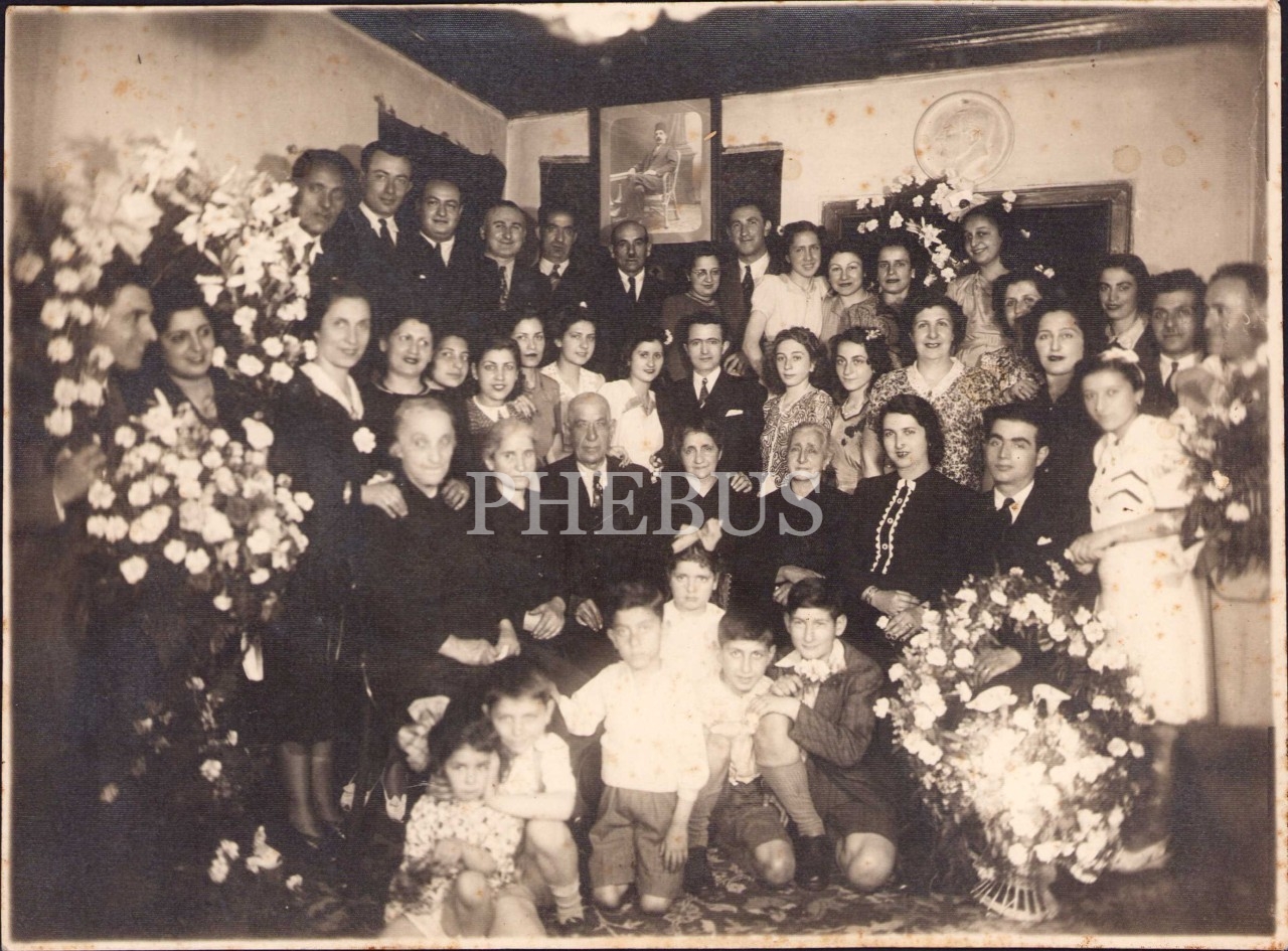 Kabartmalı Atatürk levhasının asılı olduğu bir odada düğün hatıra fotoğrafı, 17x23 cm, yorgun haliyle