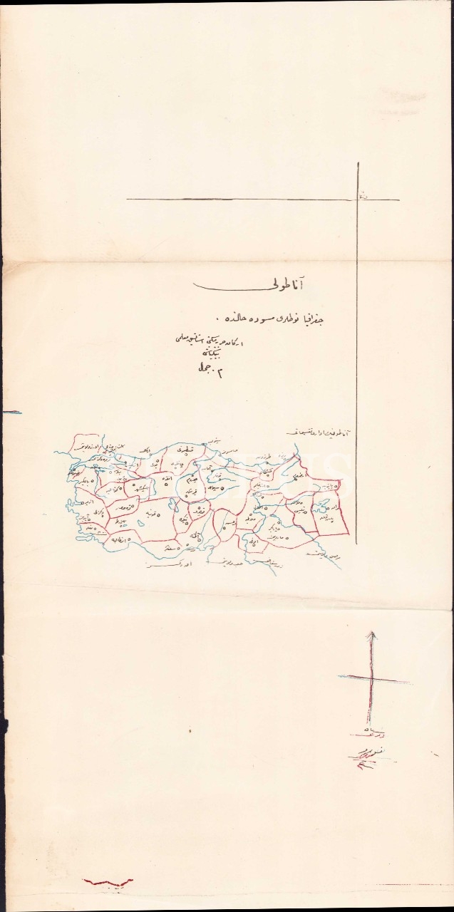 Osmanlıca coğrafya notu olarak Anadolu haritası, Erkan-ı Harbiye Mektebi İstatistik Muallimi M. Cemal, 21x46 cm