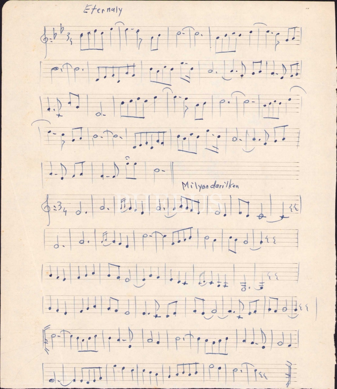 Jorj D. Papajorjiu Musiki Mağazası-İstanbul damgalı notalarla birlikte matbu ve el yazması başka notaların yer aldığı nota lotu, çeşitli boyutlarda (ortalama 26x33 cm)