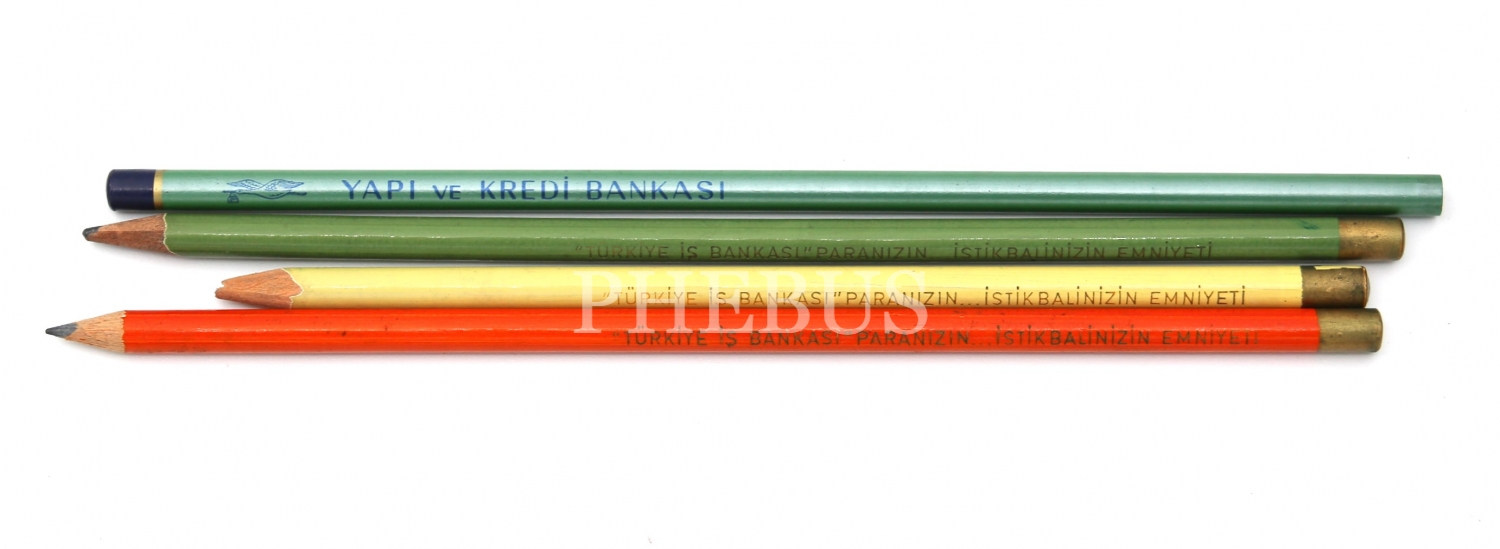 "Türkiye İş Bankası" Paranızın… İstikbalinizin Emniyeti yazılı 3 adet ve Yapı ve Kredi Bankası yazılı 1 adet ince kurşun kalem, ortalama 1x17 cm