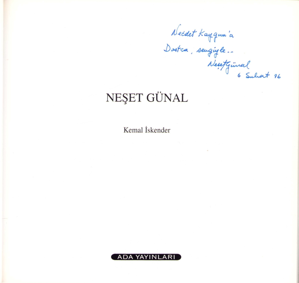Ressam Neşet Günal'dan İthaflı ve İmzalı "Neşet Günal", Kemal İskender, Ada Yayınları, İstanbul, 1995, 128 sayfa, 23x22 cm