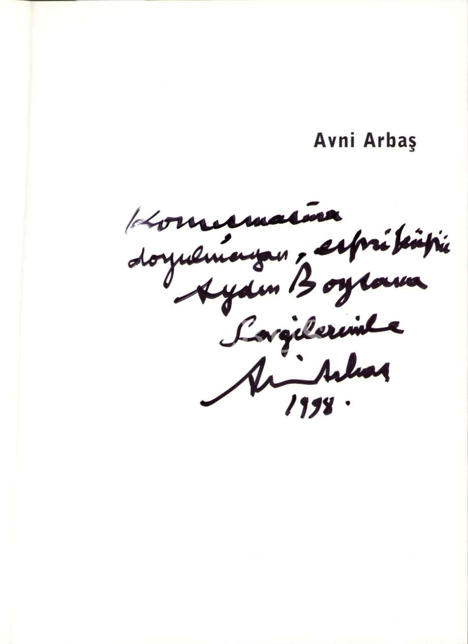 Ressam Avni Arbaş'dan Yazar Aydın Boysan'a İthaflı ve İmzalı "Avni Arbaş", Murat Ural, Milli Reasürans Yayınları, İlk Baskı [500 Adet], 47 sayfa,
