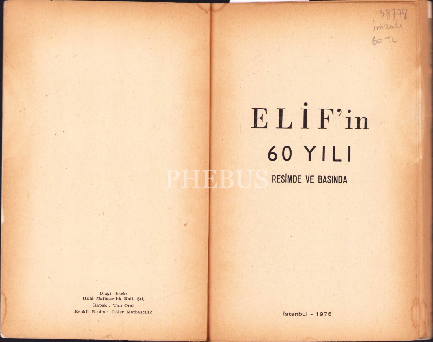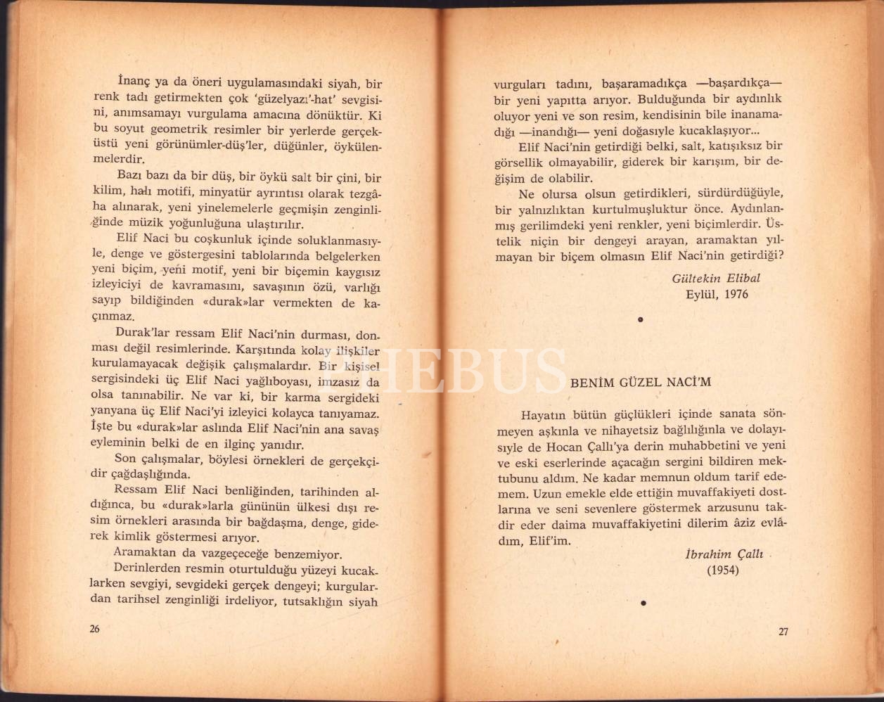 D Grubu Ressamlarından Elif Naci'den İthaflı ve İmzalı "Elif'in 60 Yılı -Resimde ve Basında-, İstanbul, 1976, sayfaların sağ alt kısmı hâliyle, 13x20 cm
