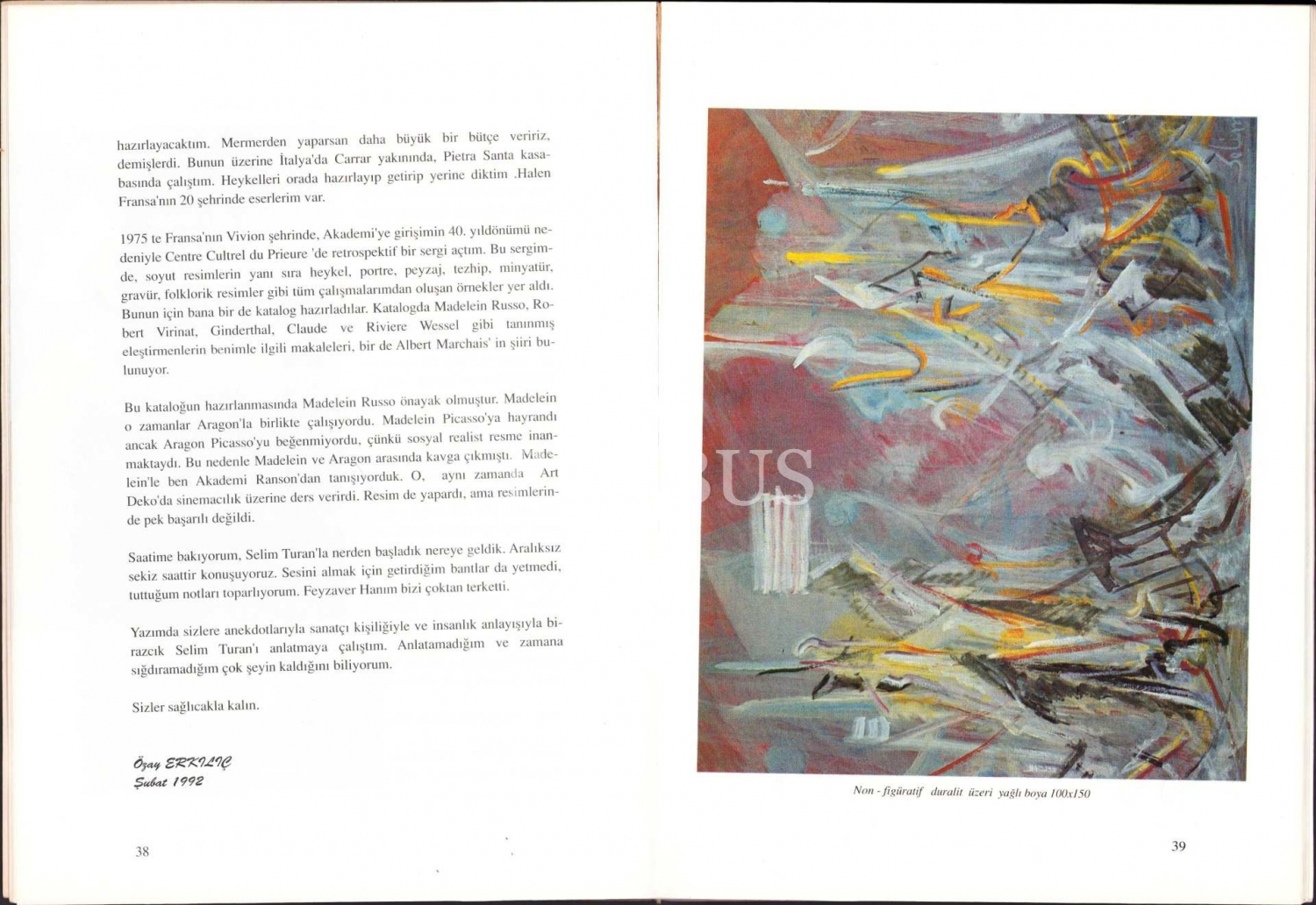 Yeniler Grubu Ressamlarından Selim Turan'dan İthaflı ve İmzalı "Selim Turan", Tuğray Sanat Galerisi, 76 sayfa, 20x27 cm