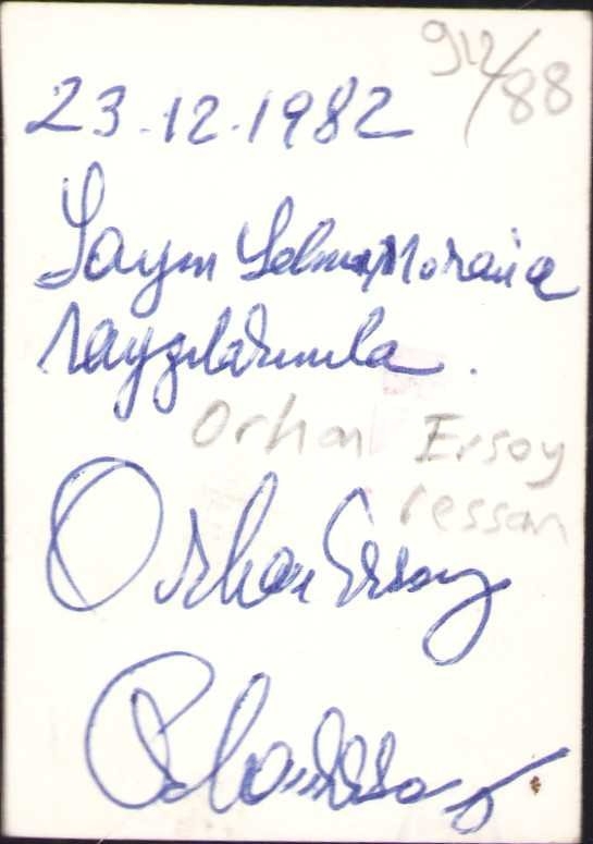 Ressam Orhan Ersoy'un İmzalı Vesikalık Fotoğrafı, 5x7 cm