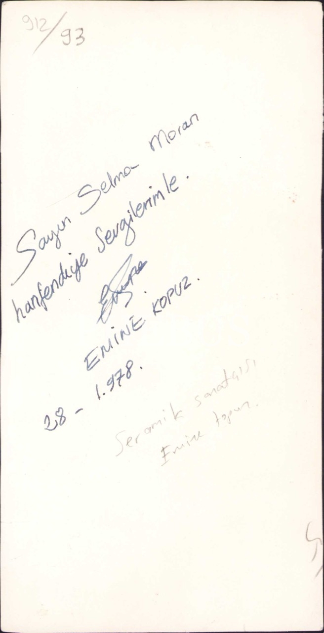 Seramik Sanatçısı Emine Kopuz'un İthaflı ve İmzalı Fotoğrafı, 12x23 cm