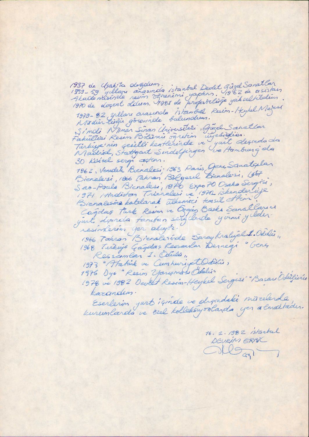 "....Çağdaş Türk Resim ve özgün baskı sanatlarını yurtdışında tanıtan sergilerde yirmi yıldır resimlerim yer alıyor....."