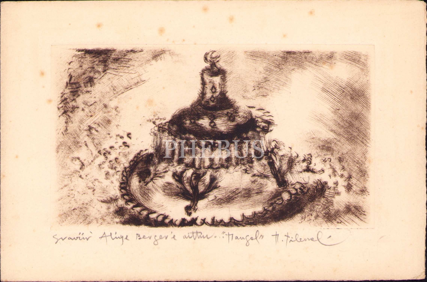 Türkiye'nin İlk Gravür Sanatkârlarından Aliye Berger'in Kağıt Üzerine Baskı Gravürü: Mangal, 14x8 cm
