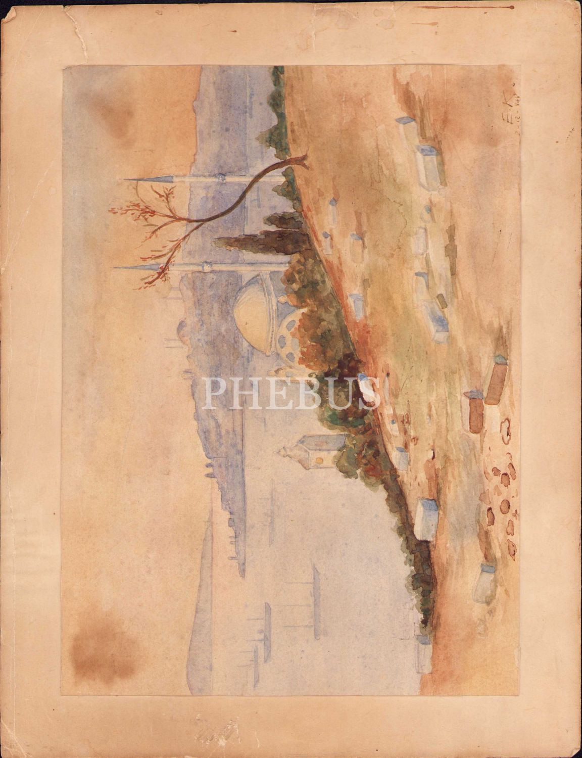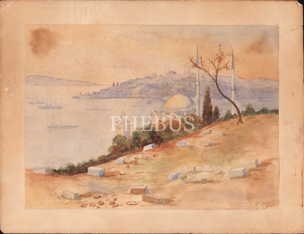 Maçka Taşlık Mevkiinden Dolmabahçe Saat Kulesi Sulu Boya Resim, E. K imzalı, 2-12-948 târihli, 25x18 cm