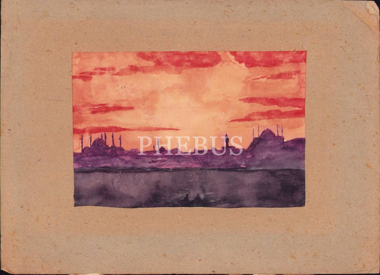 Tarihî Yarımada Silüeti Sulu Boya Resim, 18x12 cm