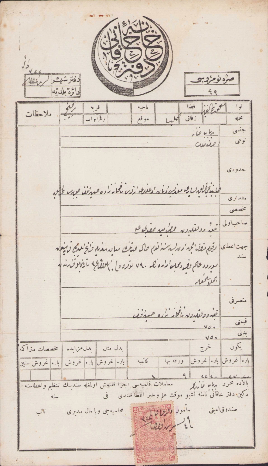 Osmanlı tapu, Defter-i Hakani, Mamuratulazizi, Elazığ, Kilise sokak, 1322 tarihli, 15x28cm