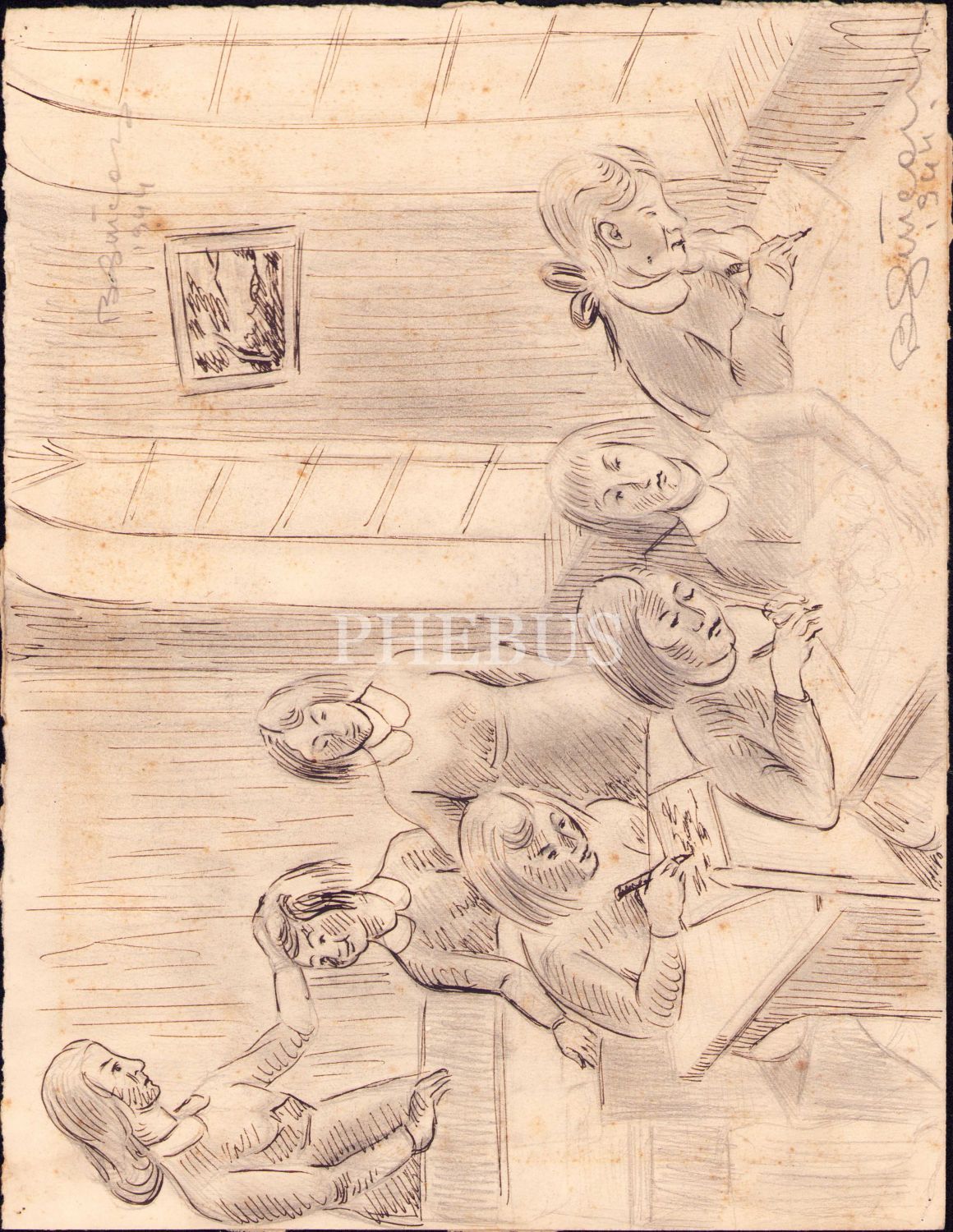 Ressam Behçet Gürcan İmzalı: Sınıf, 1944, Karışık Teknik 33x23 cm