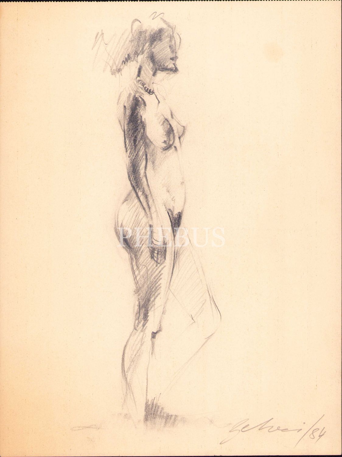 İmzalı Karakalem Nü, 1984, 24x32 cm