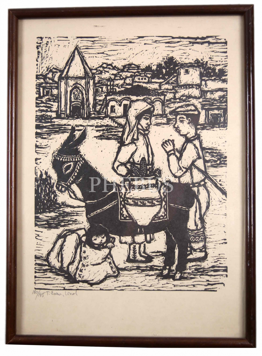 Turgut Zâim İmzalı, Özgün Baskı [Linolyum] Türkeli Köyü, Numaralı Baskı 180/145, 20x27 cm