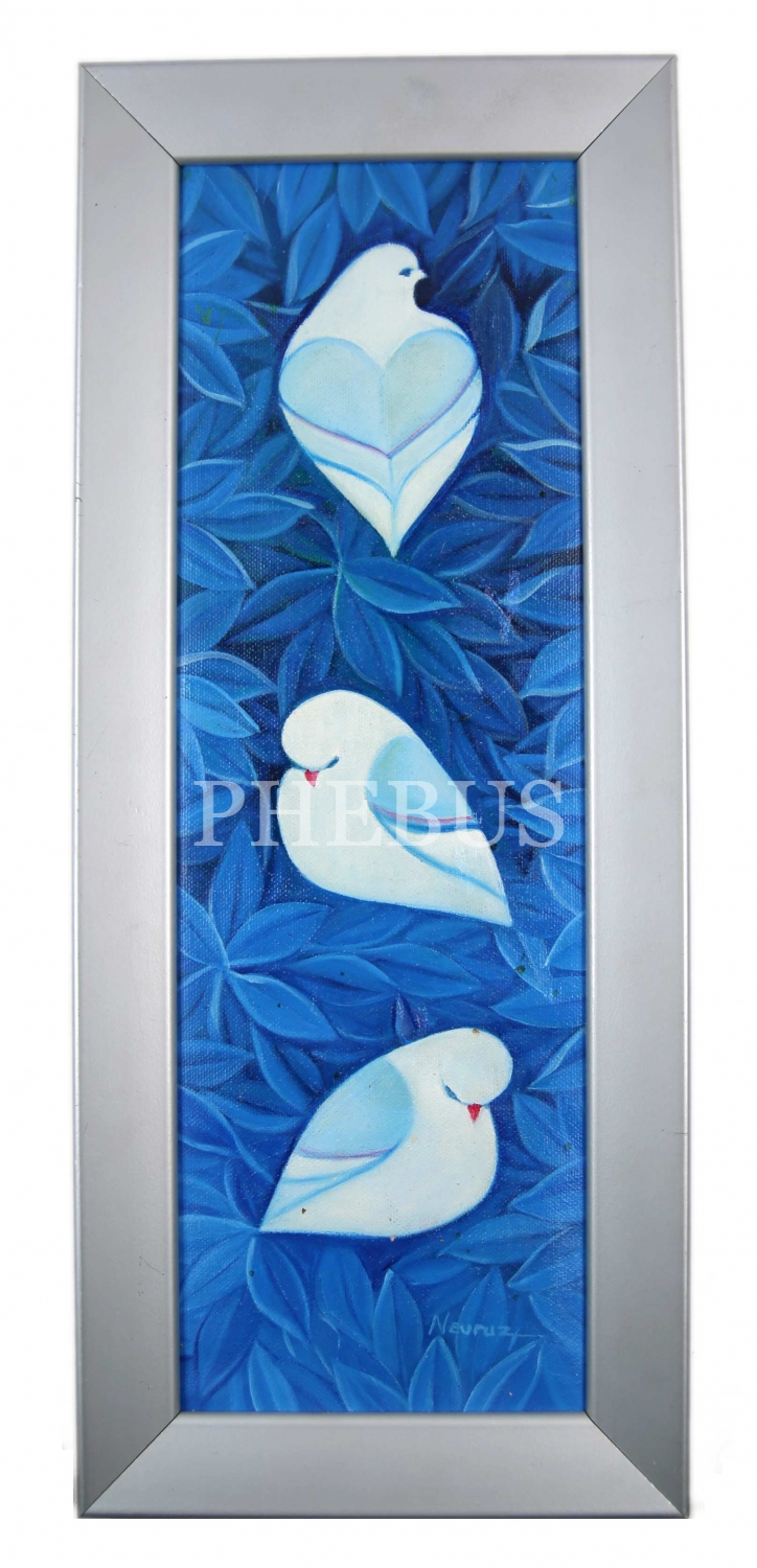 "Kuşlar", Yağlı Boya, Nevruz Erken İmzalı, 13x42 cm