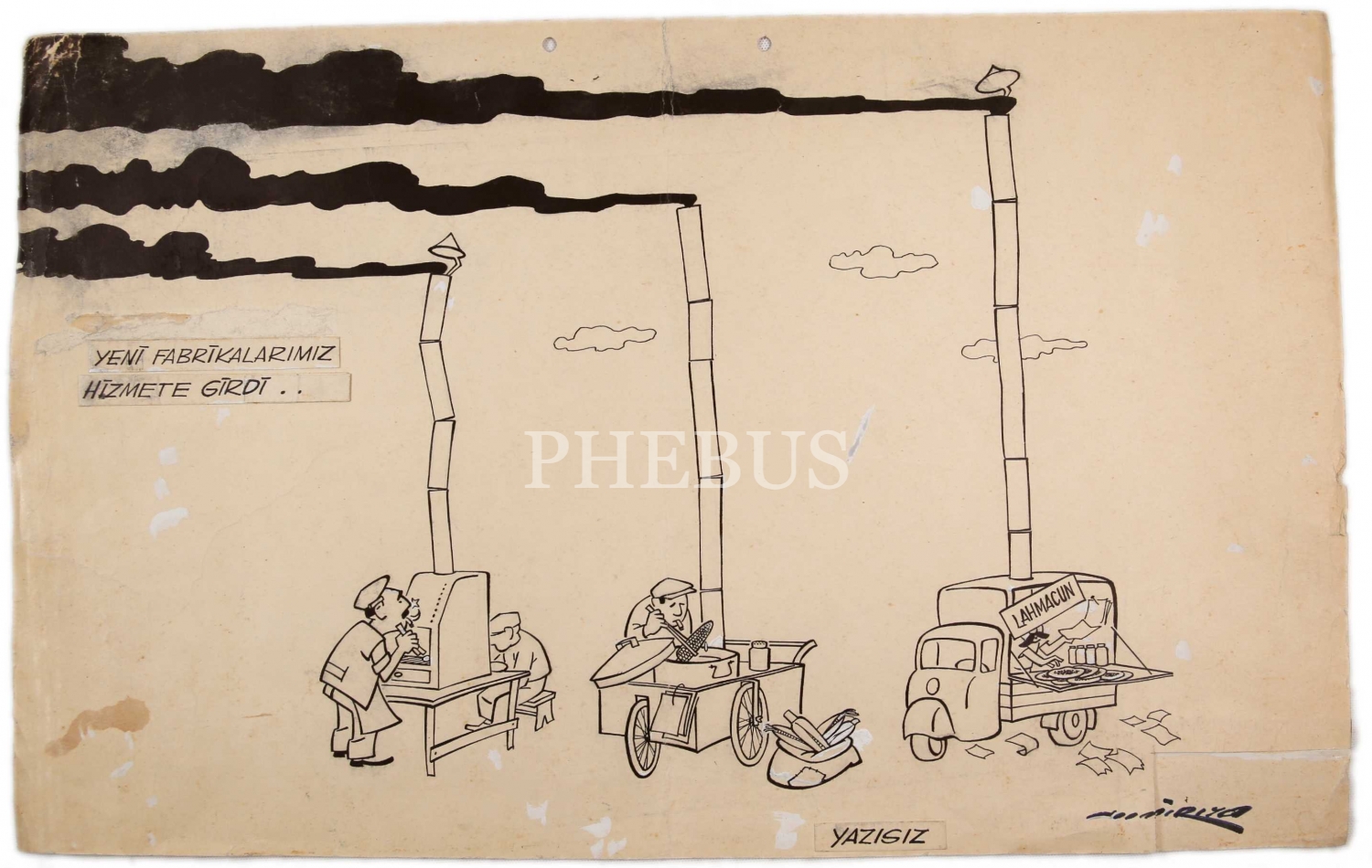 Karikatürist Necmi Rıza Ayça İmzalı, Orijinal Çizim Büyük Boy Karikatür, 50x32 cm