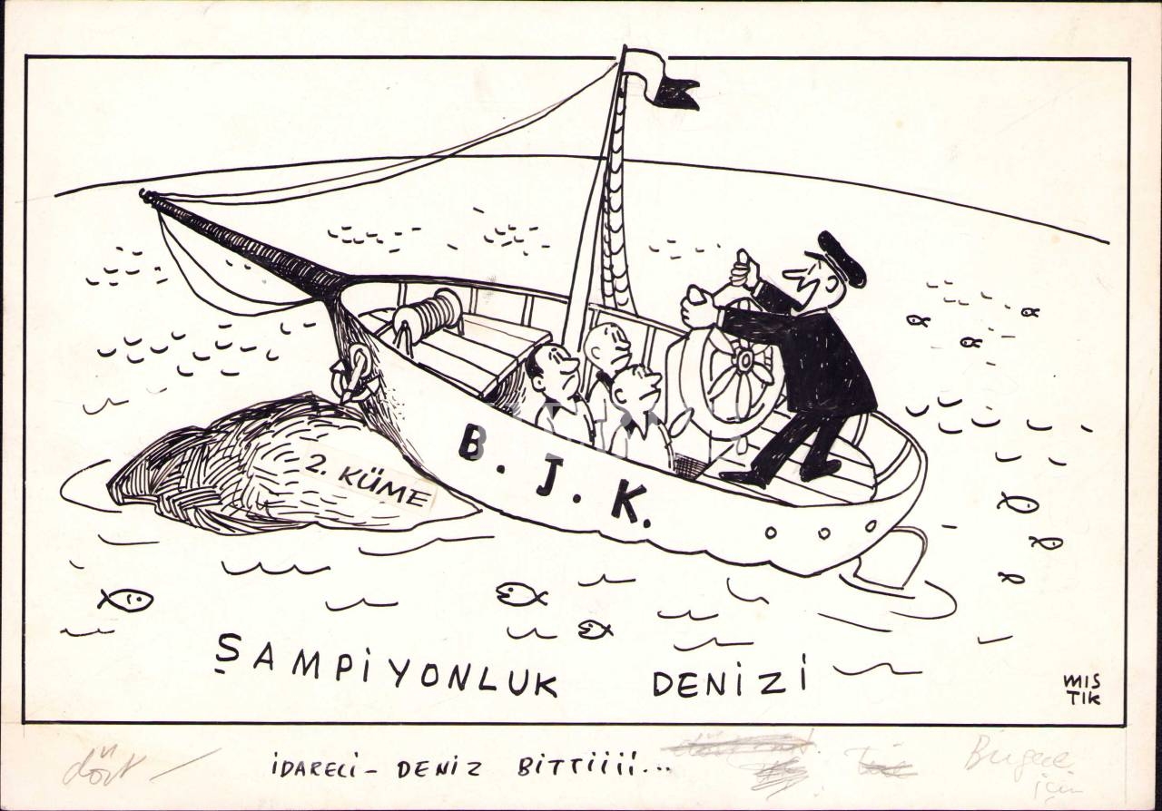 Karikatürist Mıstık [Mustafa Eremektar] İmzalı Orijinal Çizim Karikatür, 25x17 cm