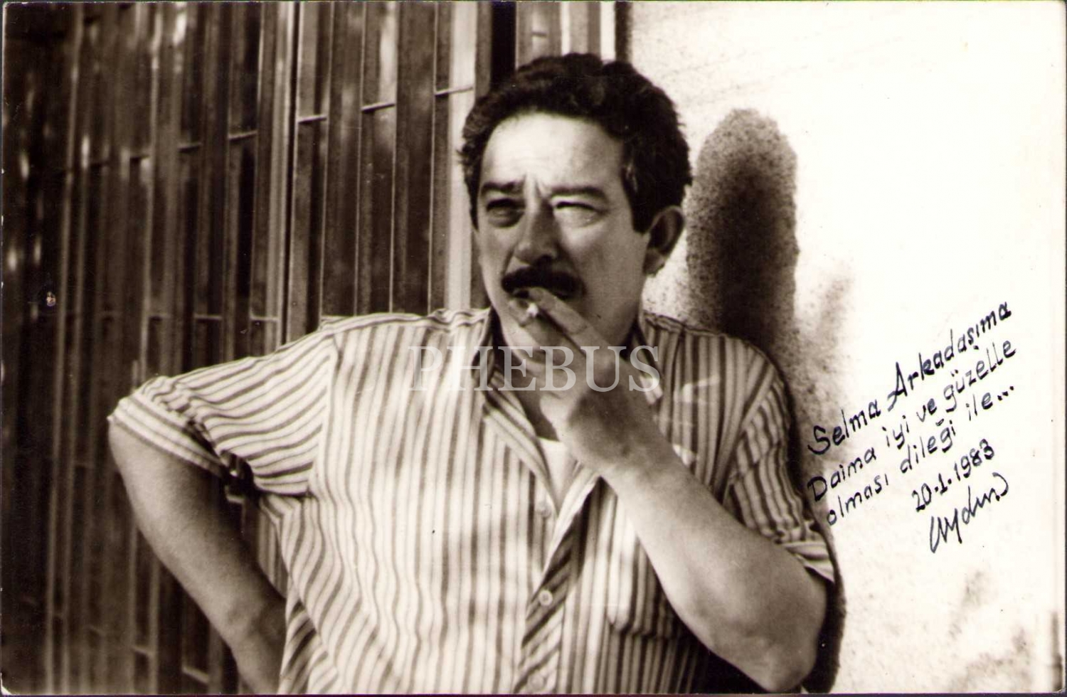 Karikatürist Aydın Aliustaoğlu'nun İthaflı ve İmzalı Fotoğrafı, 1983 tarihli, 14x9 cm