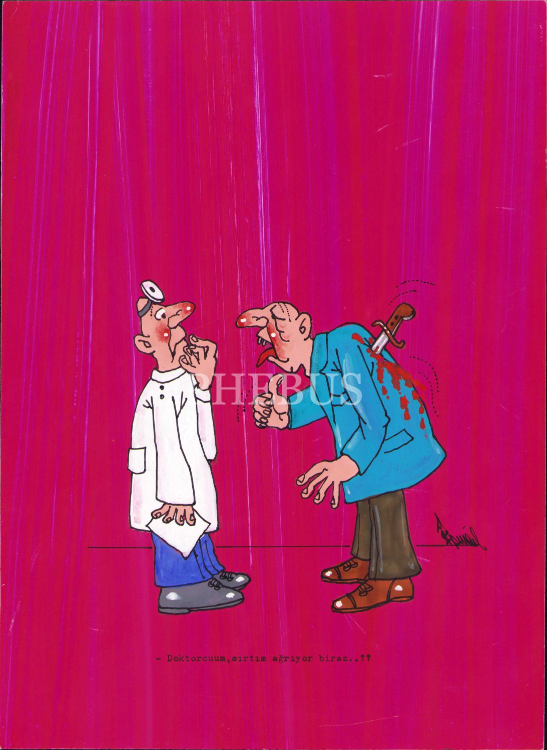 Karikatürist İsmail Biret'in İmzalı Orijinal Çizim Renkli Karikatürü, 21x29 cm