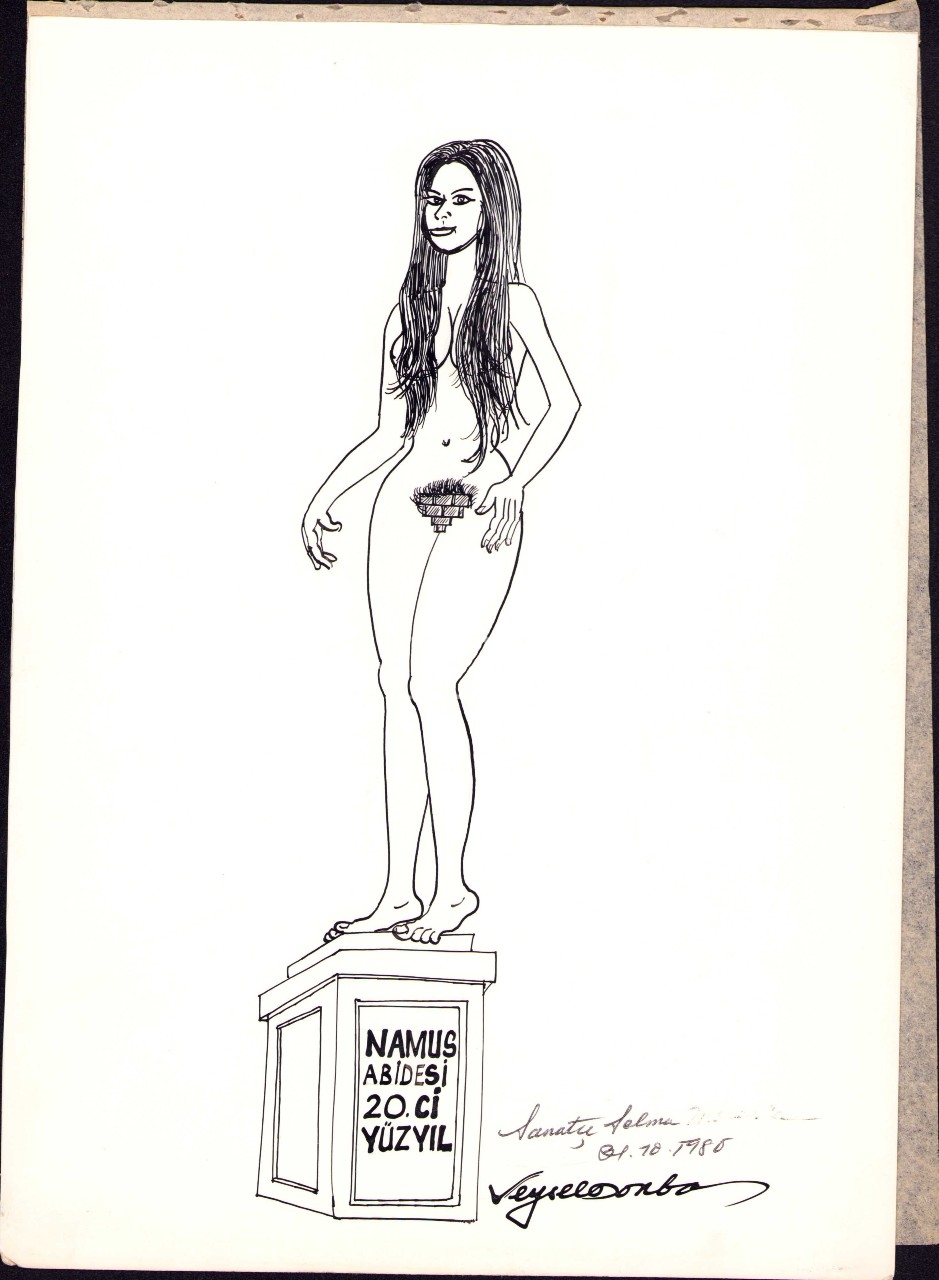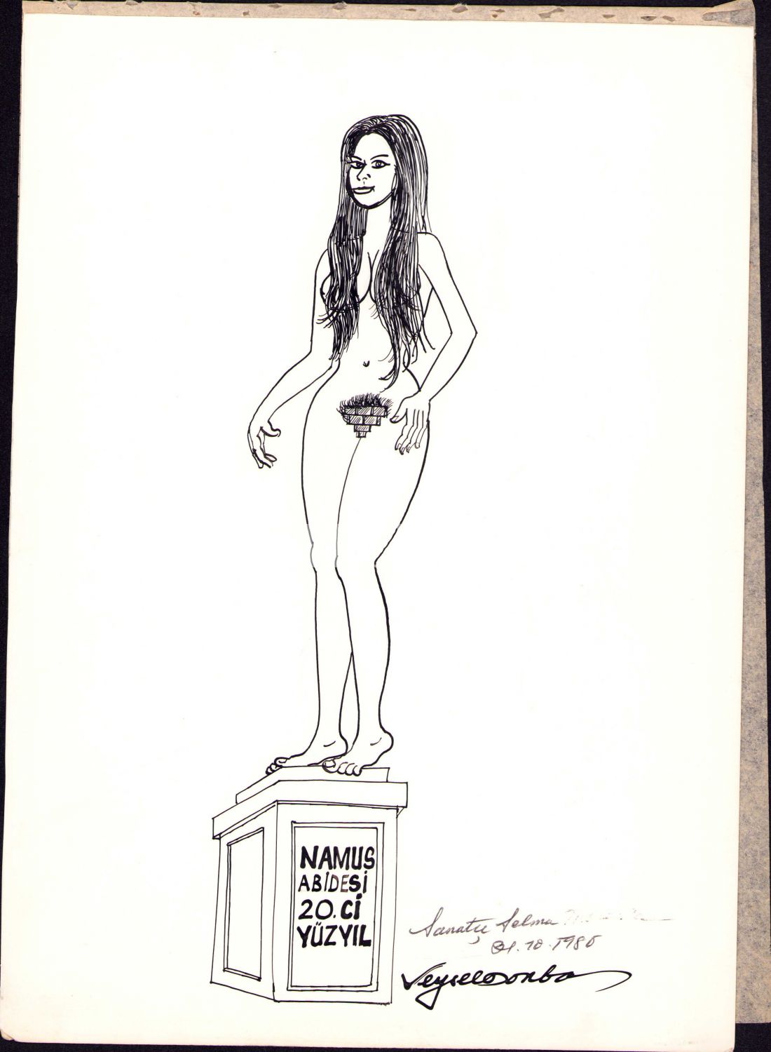 Karikatürist, Asurolog ve Sümerolog Veysel Donbaz'dan İthaflı ve İmzalı Orijinal Çizim Karikatür, 24x33 cm