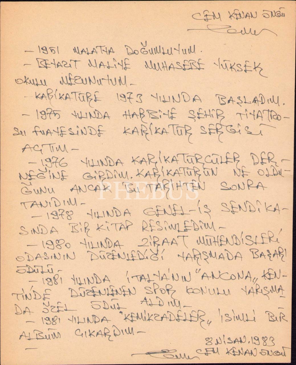"1976 yılında Karikatürcüler Derneği'ne girdim. Karikatürün ne olduğunu ancak bu tarihten sonra tanıdım...."