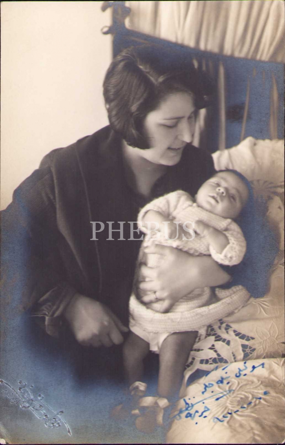 Anne-bebek hatıra fotoğrafı, Osmanlıca Foto Resne-İzmir soğuk damgalı ve ithaflı, 1927 tarihli