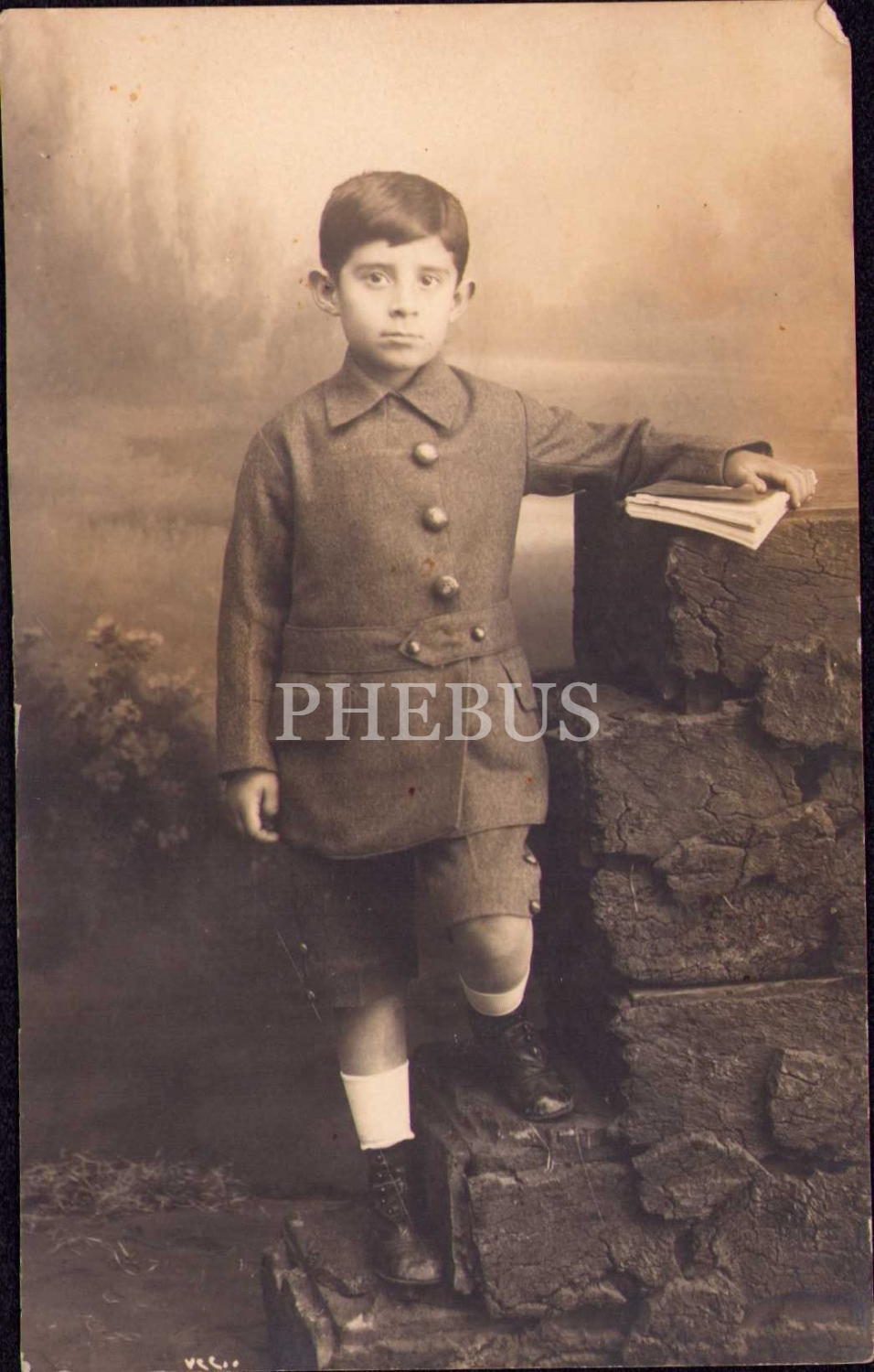 Elinde kitabıyla poz vermiş çocuk fotoğrafı, Osmanlıca ithaflı ve 1334 tarihli